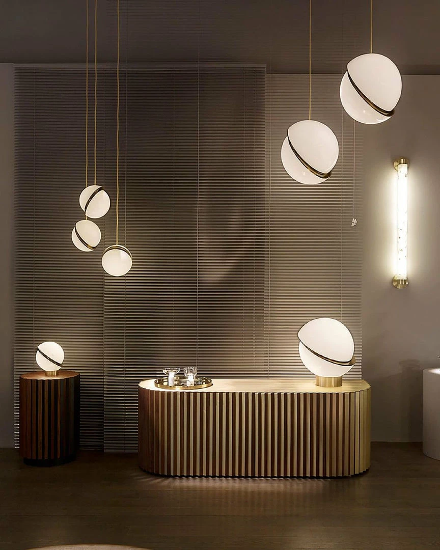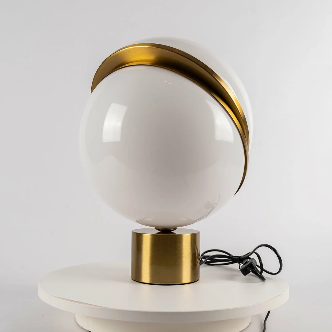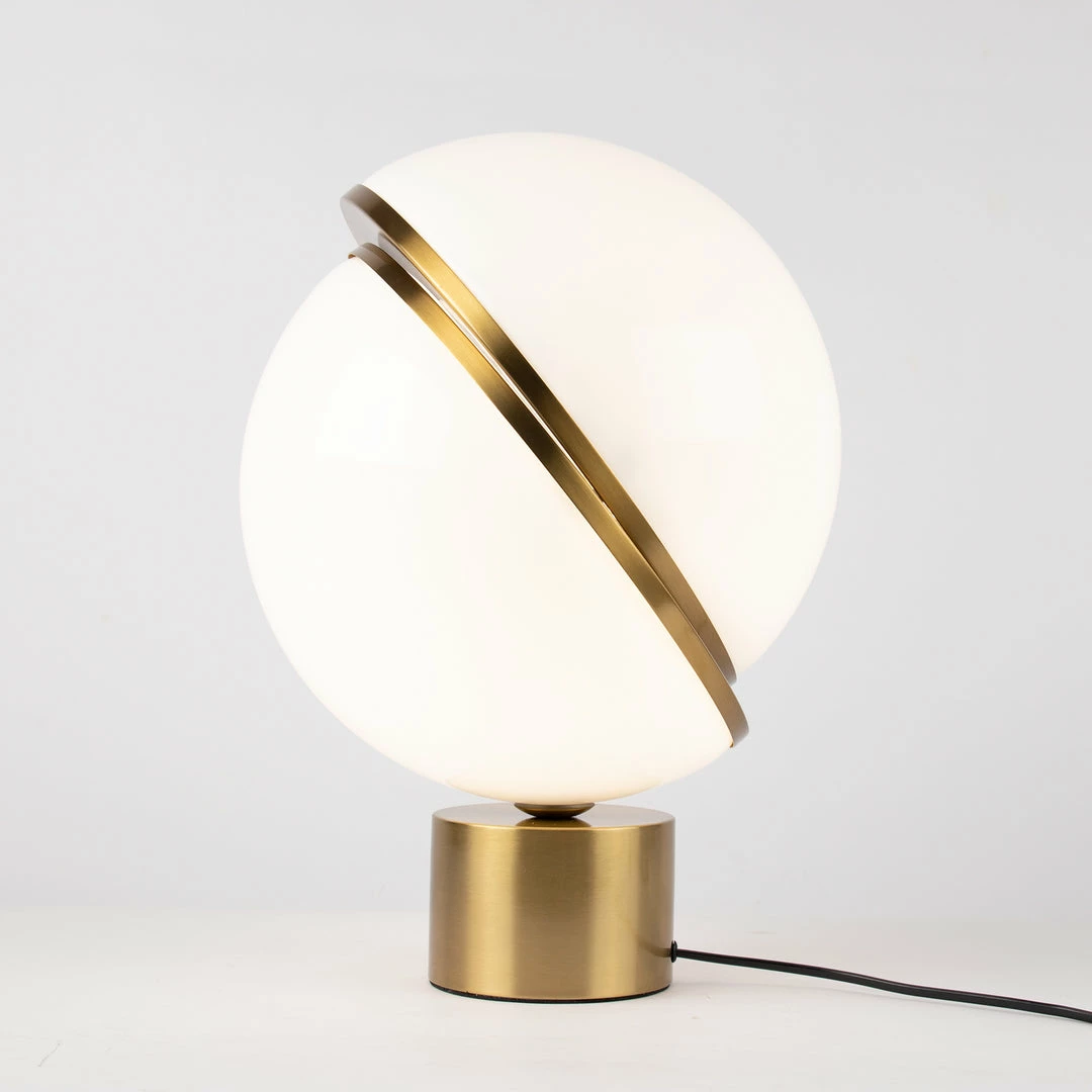 A miniature version of the popular Crescent Light, this illuminated sphere is sliced asymmetrically in half to reveal a crescent-shaped brushed brass fascia. Mini Crescent seamlessly combines the solid and the opaque.