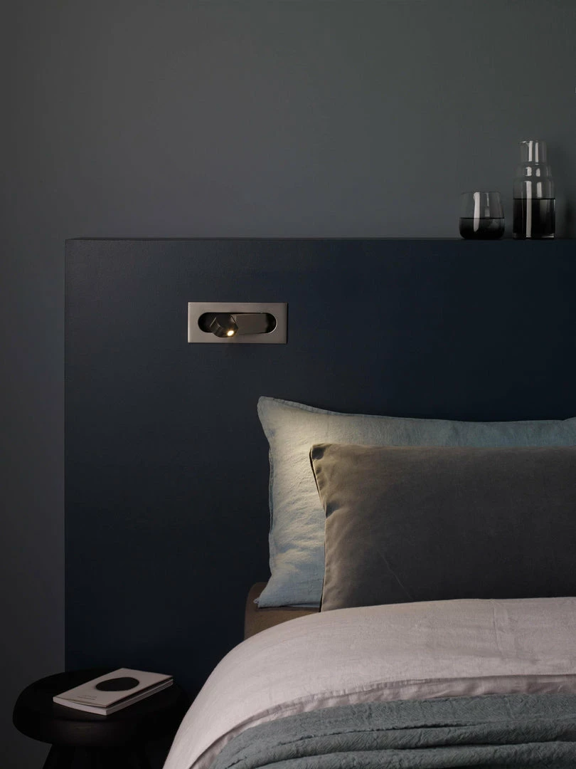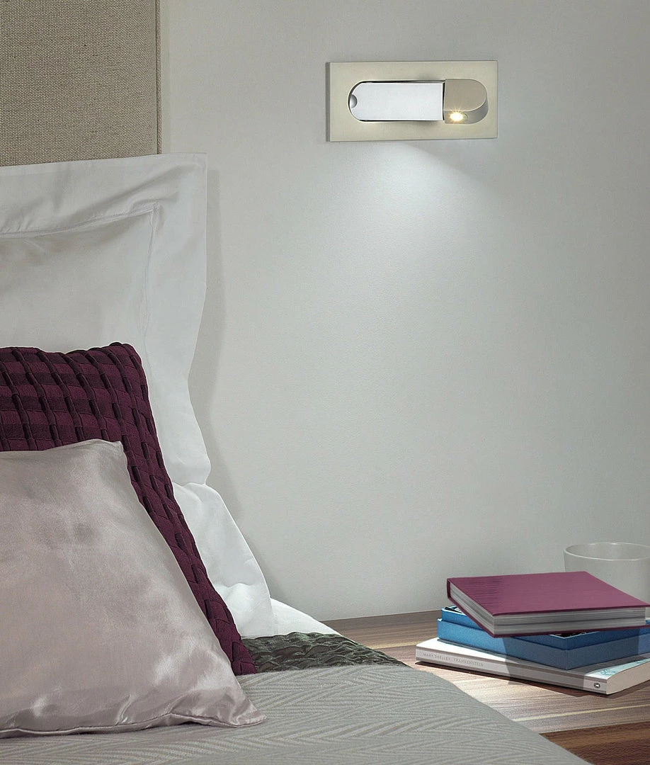 Modern LED bedside reading light. Adjustable head allowing you more choice where the light is placed and directed. Ideal for a bedside reading light as you can illuminate what you need knowing you will not interfere and bother anyone else.