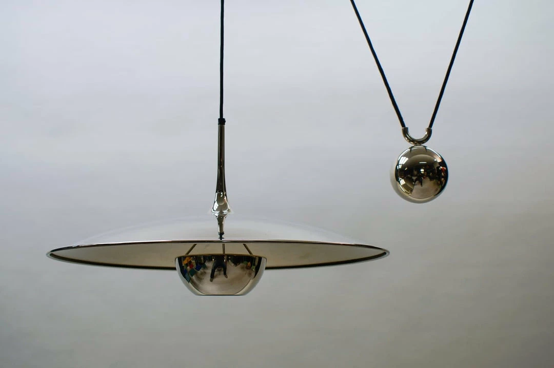 Very nice and extremely rare height-adjustable pendulum lamp from the 1970s.