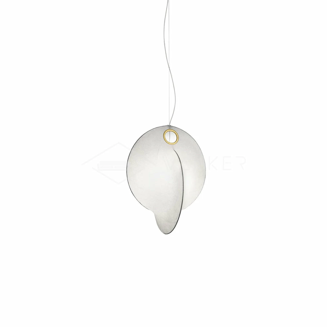 Overlap, a contemporary pendant lamp, is Michael Anastassiadesโ tribute to the distinct cocoon wrapping technique that the designers lighting has won several hearts and awards with. This contemporary pendant light is made from steel and cocoon, while its internal structure comprises of white powder painted steel. As the name suggests, Overlap is a modern pendant lamp by Michal Anastassiades that features two interlocking rings that intersect at right angles.