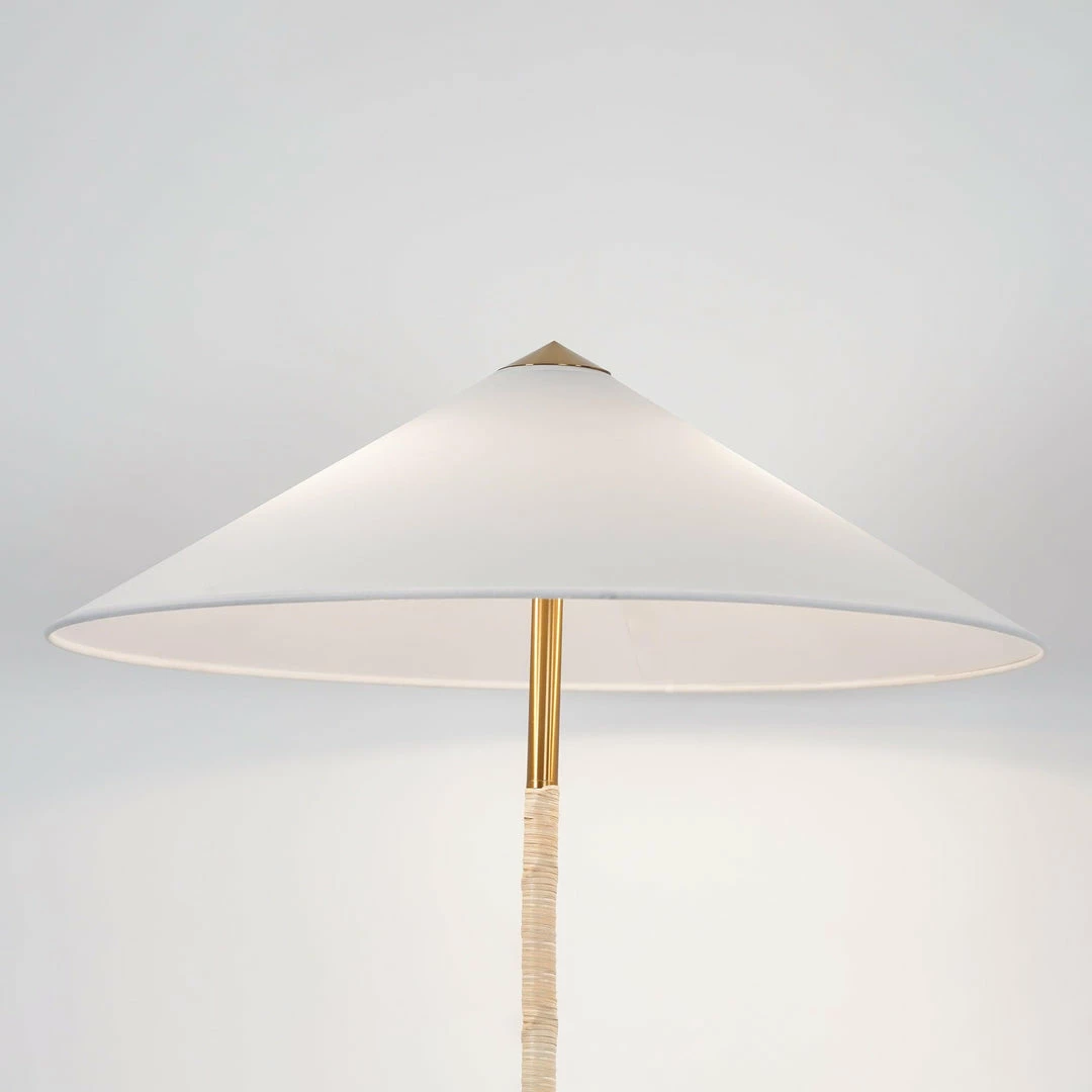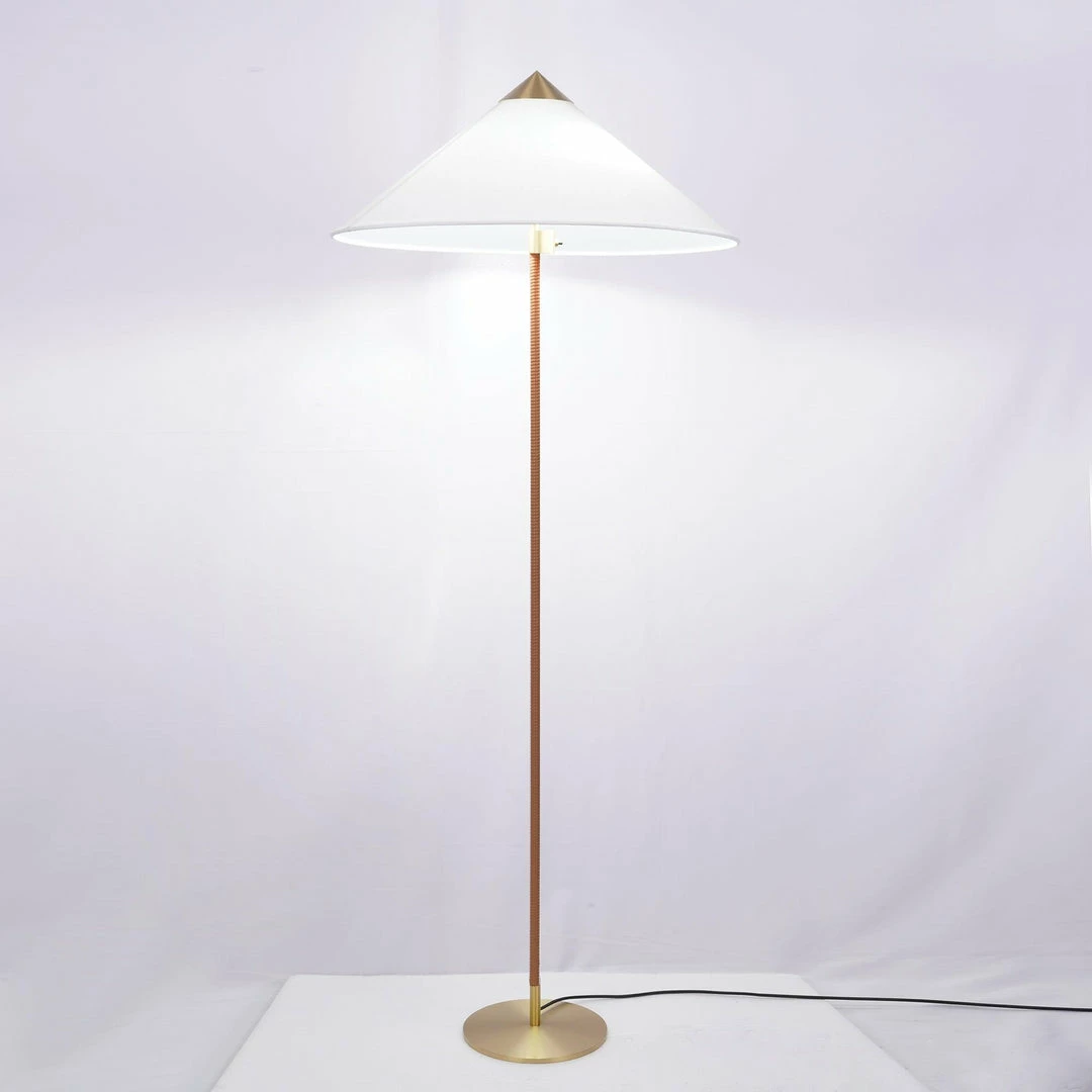 Characterised by its elegant and airy lampshade and rattan-covered stem, the 9602 Floor Lamp shows the designerโs limitless imagination and unparalleled ability to create designs of enduring beauty. Adding a playful, exuberant quality to the top, balanced by the more static form of the base, the 9602 Floor Lamp is perfectly suited for creating a gentle ambient light in the domestic living room.