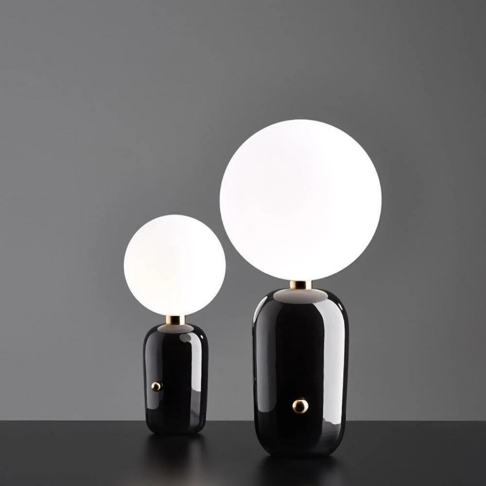Jaime Hayon created the aballs table lamp, combining the world class craftsmanship skills of Bosa with the traditional artistry of hand blown glass. The aballs table lamp is made up of a blown glass diffuser and a gold, copper or black ceramic base. The result produces a warm ambient light and can be used in a domestic environment as well as in contract projects.