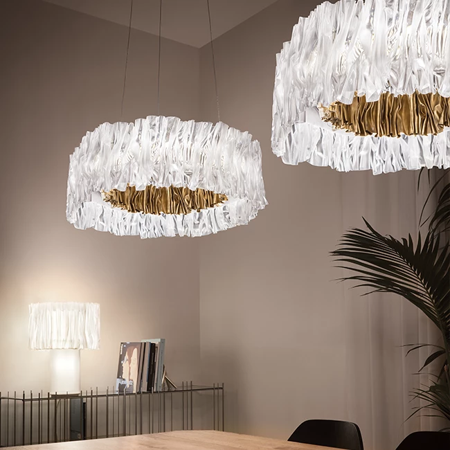 The refined Accordon suspension lamp, conjures the image of atextile pliss or anaccordionโs bellows. With an innovative hand moulded, this luxury Italian collection of and suspension lamps is a sure marker of the new contemporary narrative that seesdesign, fashion, artisan technique and technology in permanent interaction.