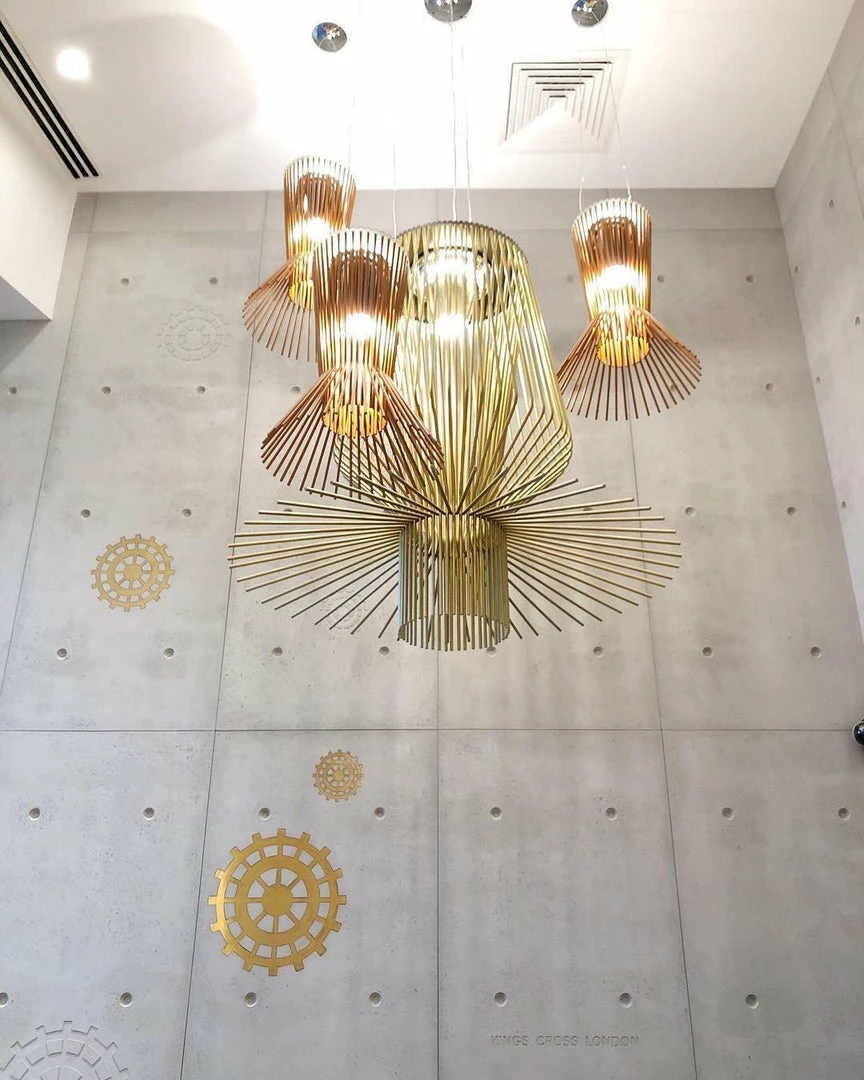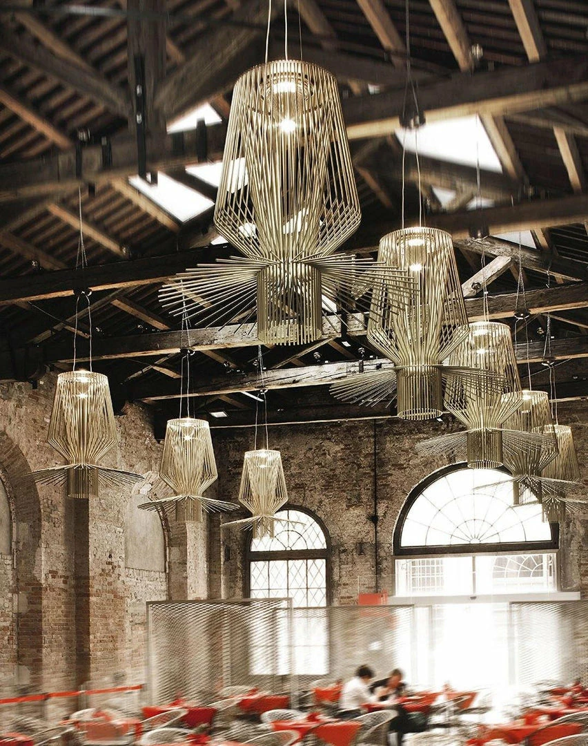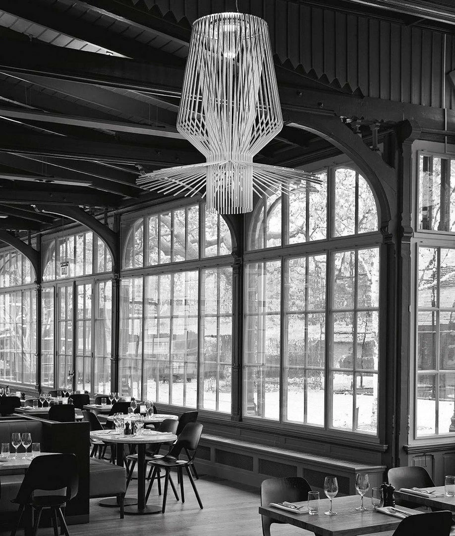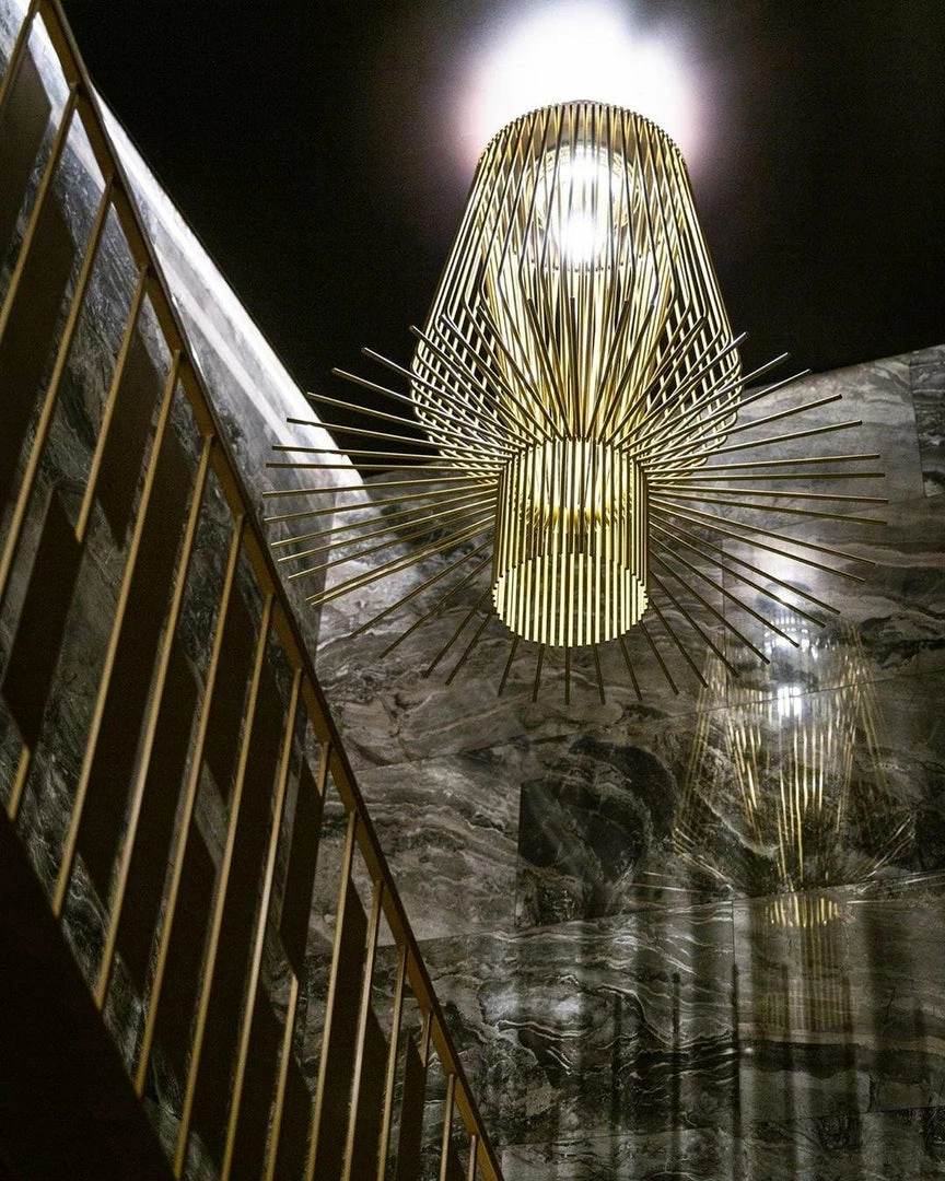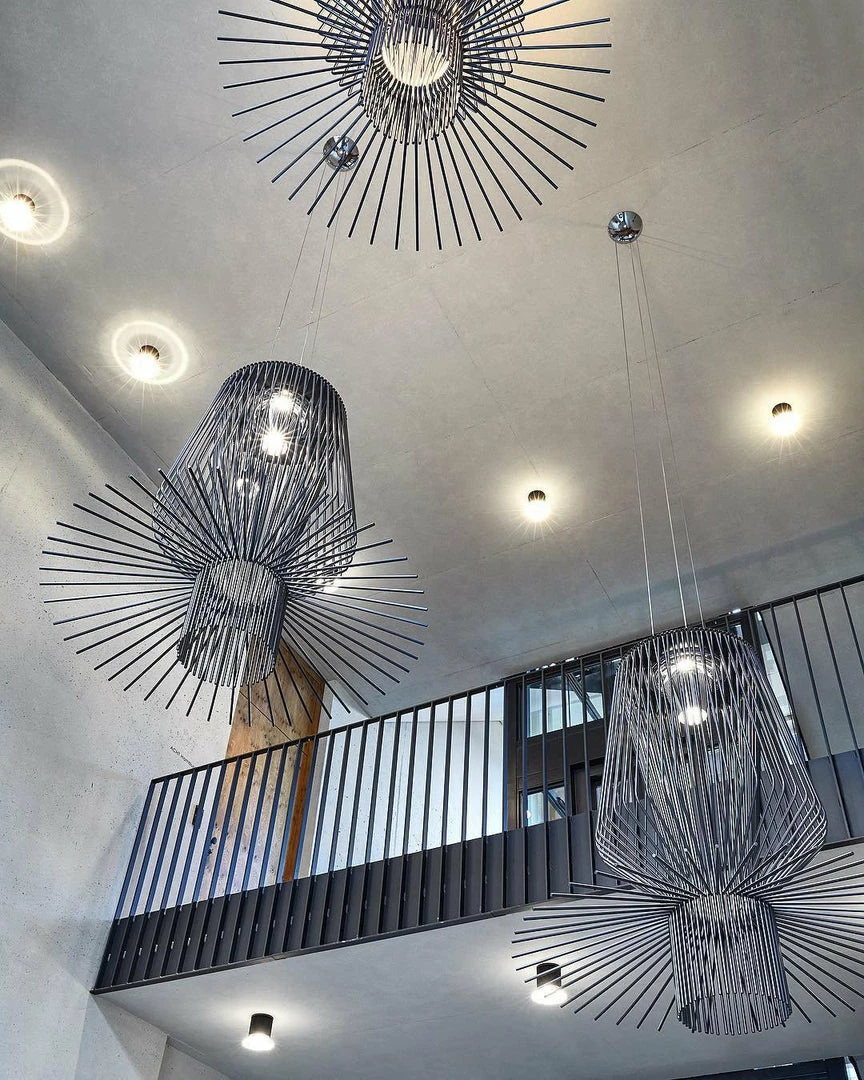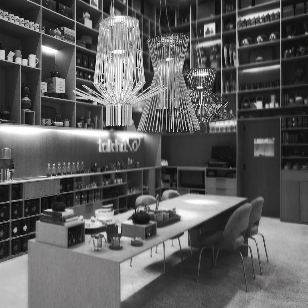 The special design of the metal elements makes it possible to obtain shapes that blend together, creating a singular aerial and almost bodiless sensation. Allegretto Ritmico, Vivace, and Assai are ideal for creating the focal point of any environment, public and private. A task achieved using different and truly original languages, materials, shapes, volumes, and colors.