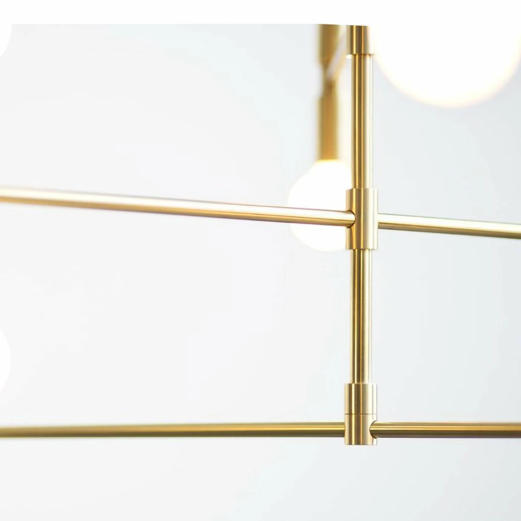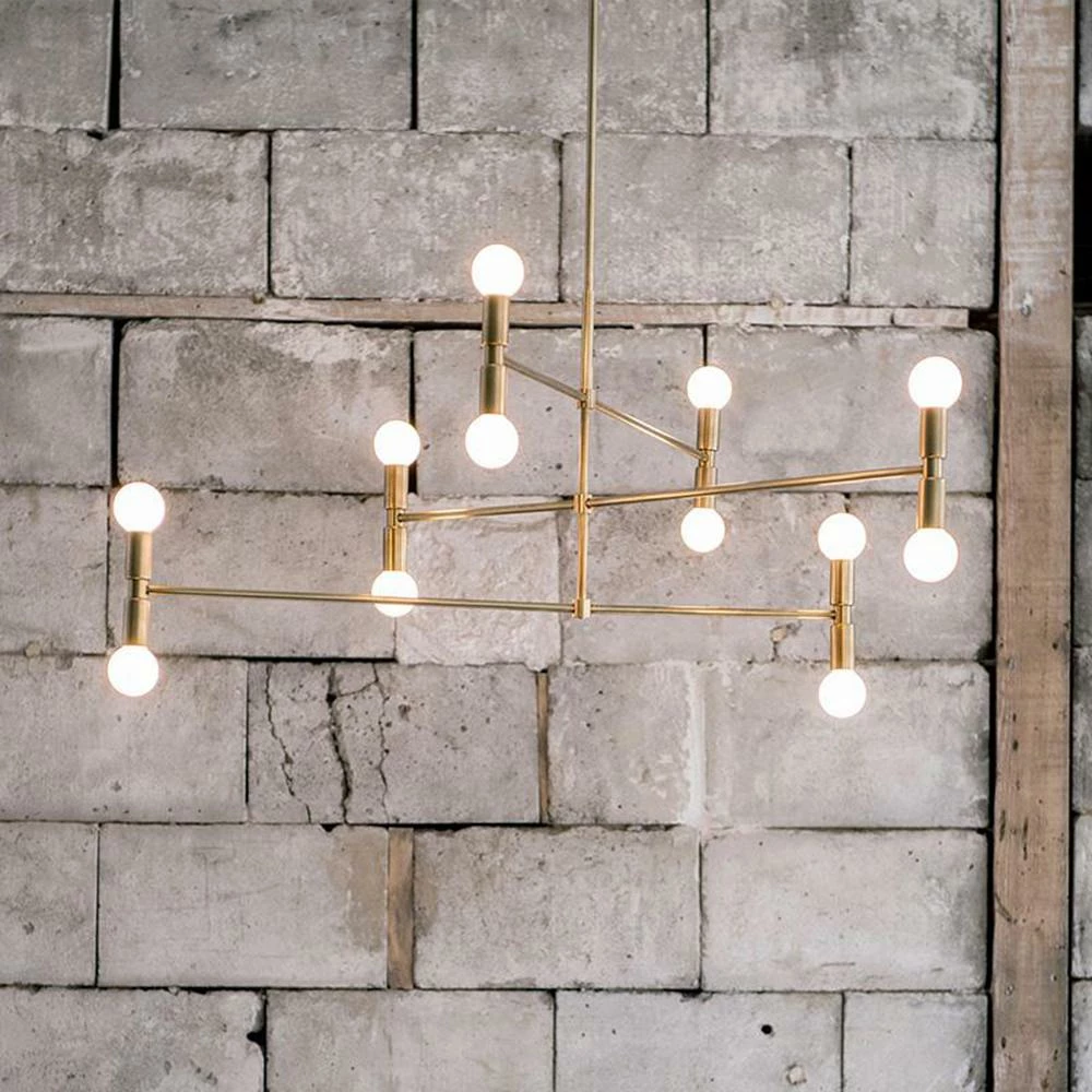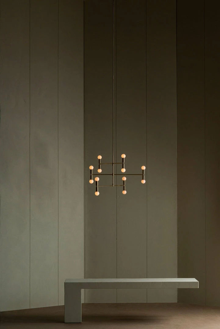 The atomium series combines the directness of exposed, spherical bulbs with the rich materiality of brass. Focused, geometric compositions contain these two features, balancing line, surface, and luminous points. The result is a collection of lamps based in the reflectivity of brassโlamps that are both atmospheric and firm.