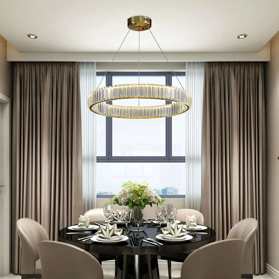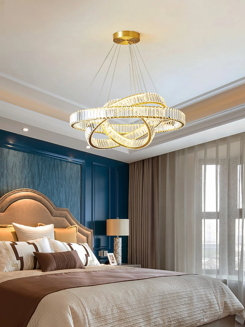 Unique interlaced ring design, golden surface, makes this pendant light more contemporary and fashionable. Contemporary design bringing an elegant and chic atmosphere to your rooms. Excellent lighting effect bringing a classic and glamourous atmosphere to your rooms.