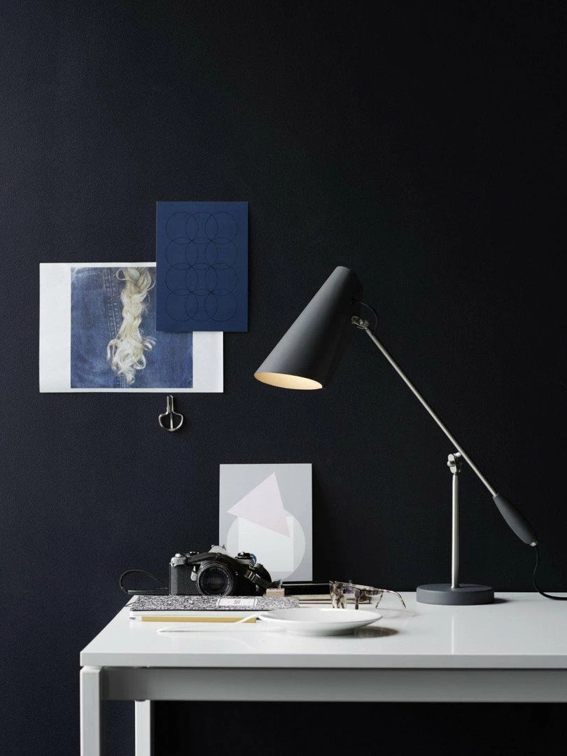 In 2013 we decided to re-launch this design classic, taking care to preserve the original shape and highly functional features that at first made it such a well-loved light. The Birdy lamp series is available in white or grey color with steel finish and black color with black or brass metal finish.