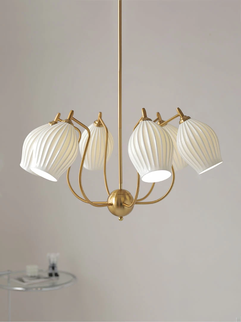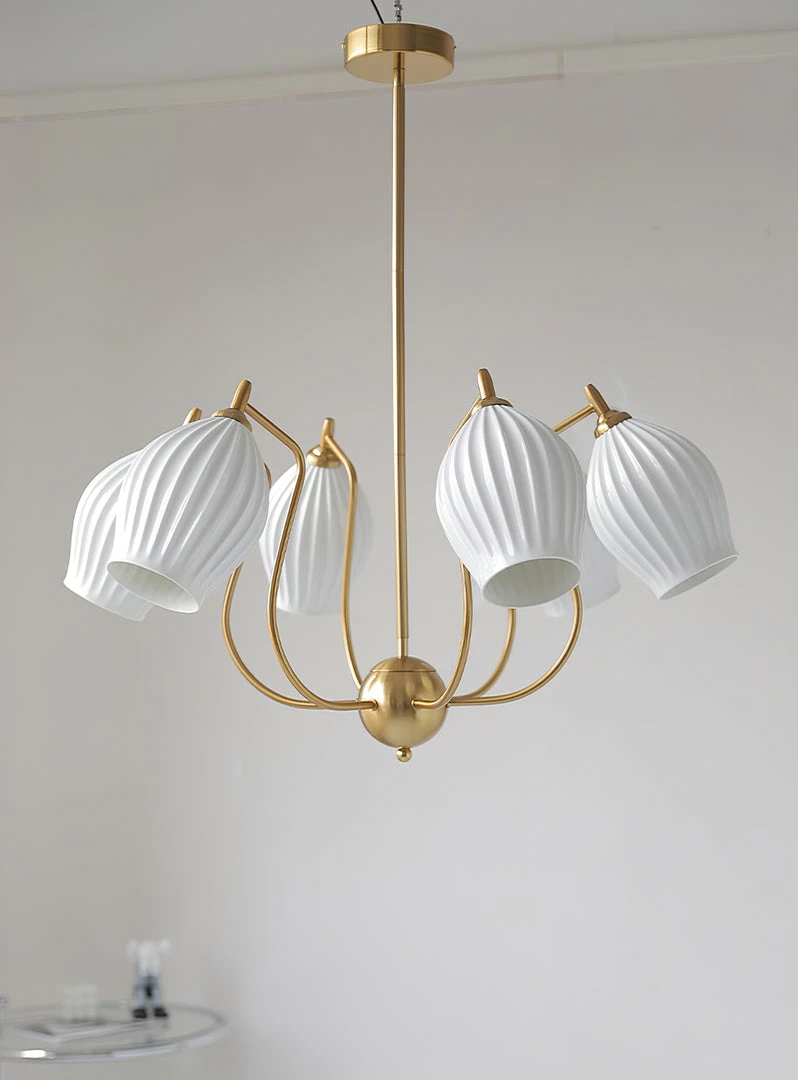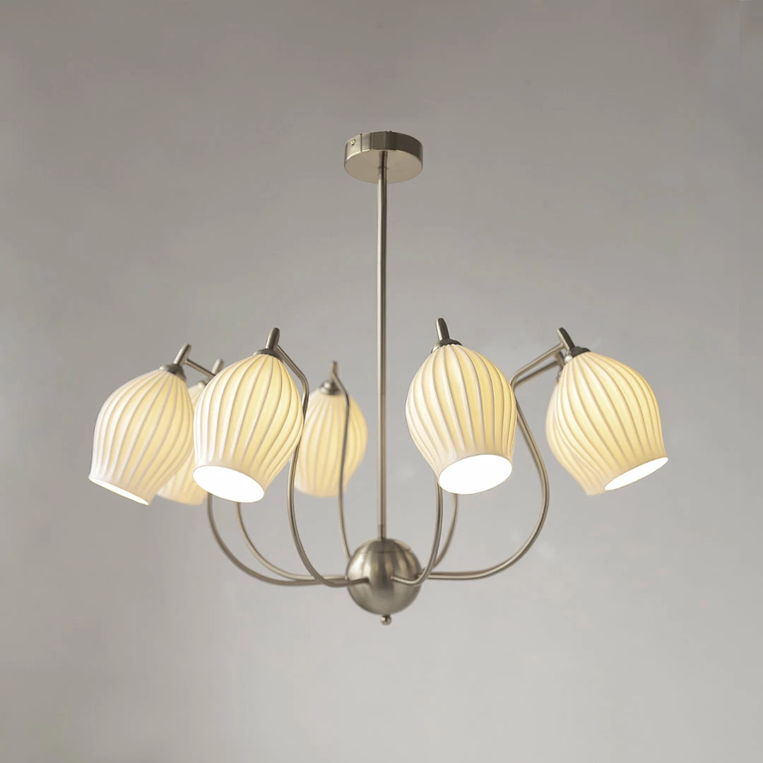 Create lighting with a custom feel with our Sculptural Glass 5-Light Ribbed Chandelier. Its warm glow and fine fluted detailing are just the thing to add illuminating intrigue to your hallway, entryway or dining room.