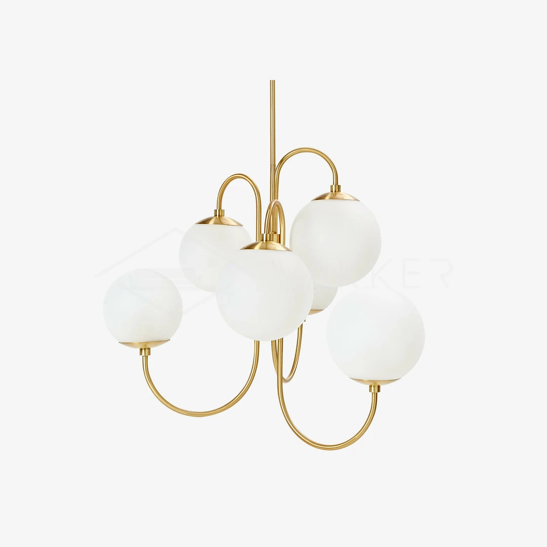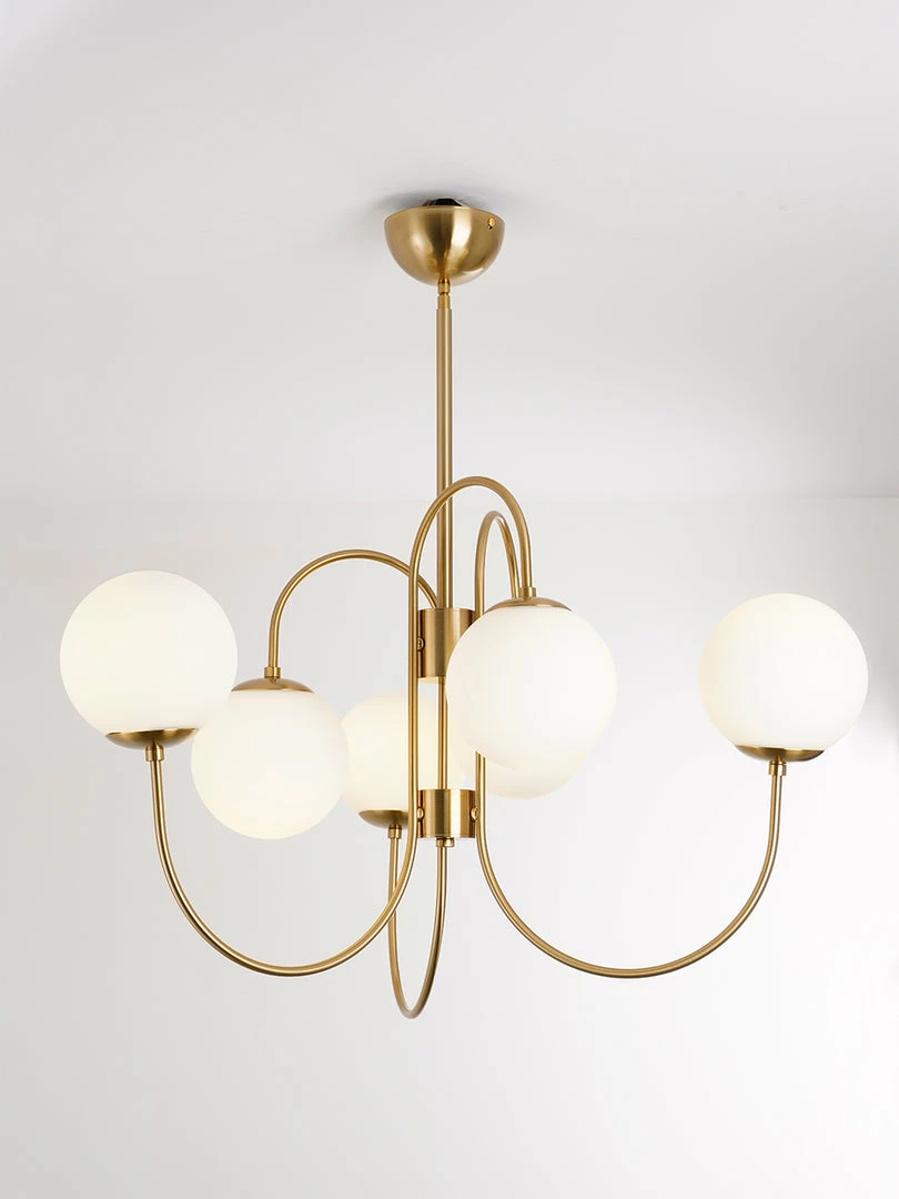 We worked with New York City-based design studio Pelle to create this curvaceous chandelier. You’ll love the soft light its salt-blasted glass globes give off.