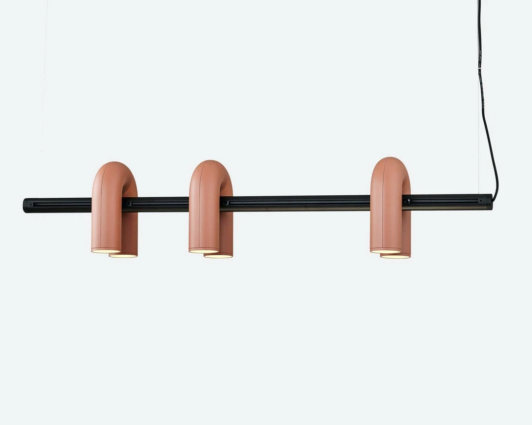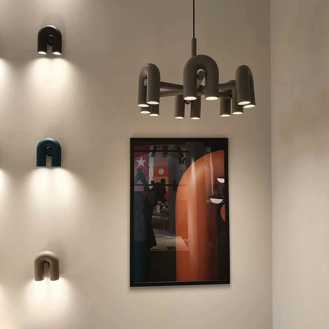CIRKUS approached function and technology with a playful gesture. U-shape modules can be moved and directed in diverse orientations. CIRKUS collection comes with a wall lamp, a track rail lamp, and two types of chandeliers to become a playful customized centerpiece in diverse spaces.