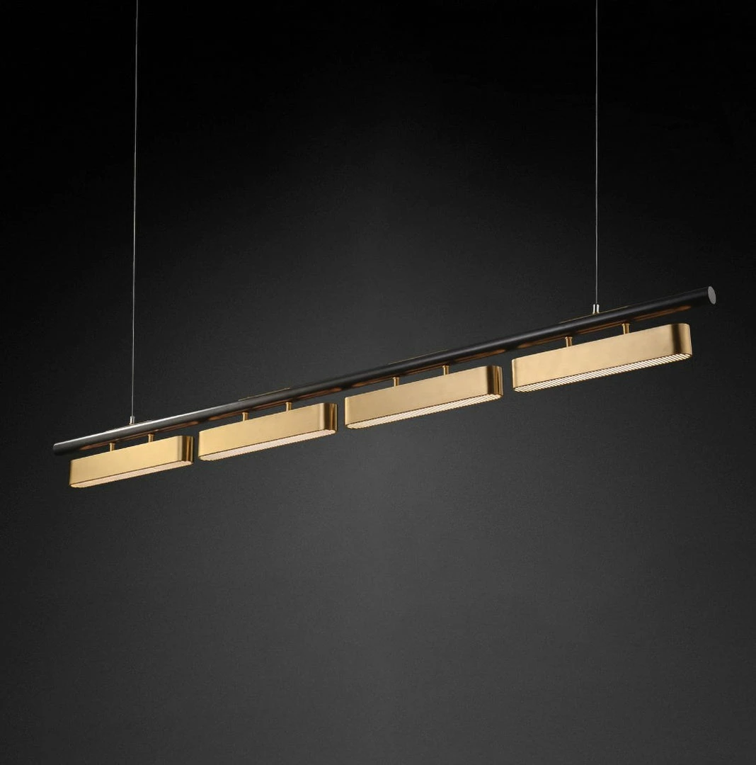 Casting a soft light both up to the ceiling and below, the striking long lines of we Colt Pendant Light makes it the perfect design to hang above a dining table or kitchen island. Three machined brass grills encase opal diffusers for a sophisticated take on urban design.