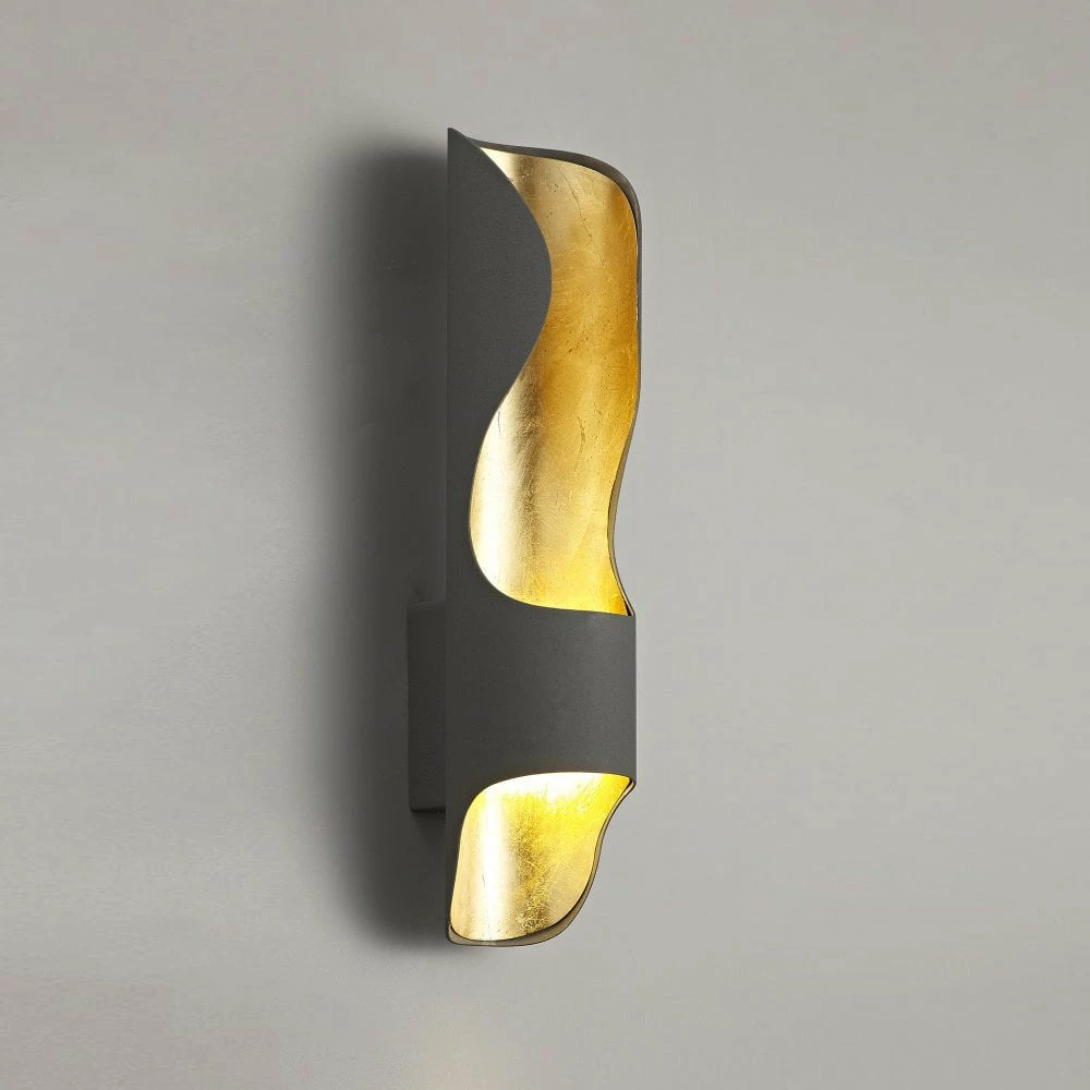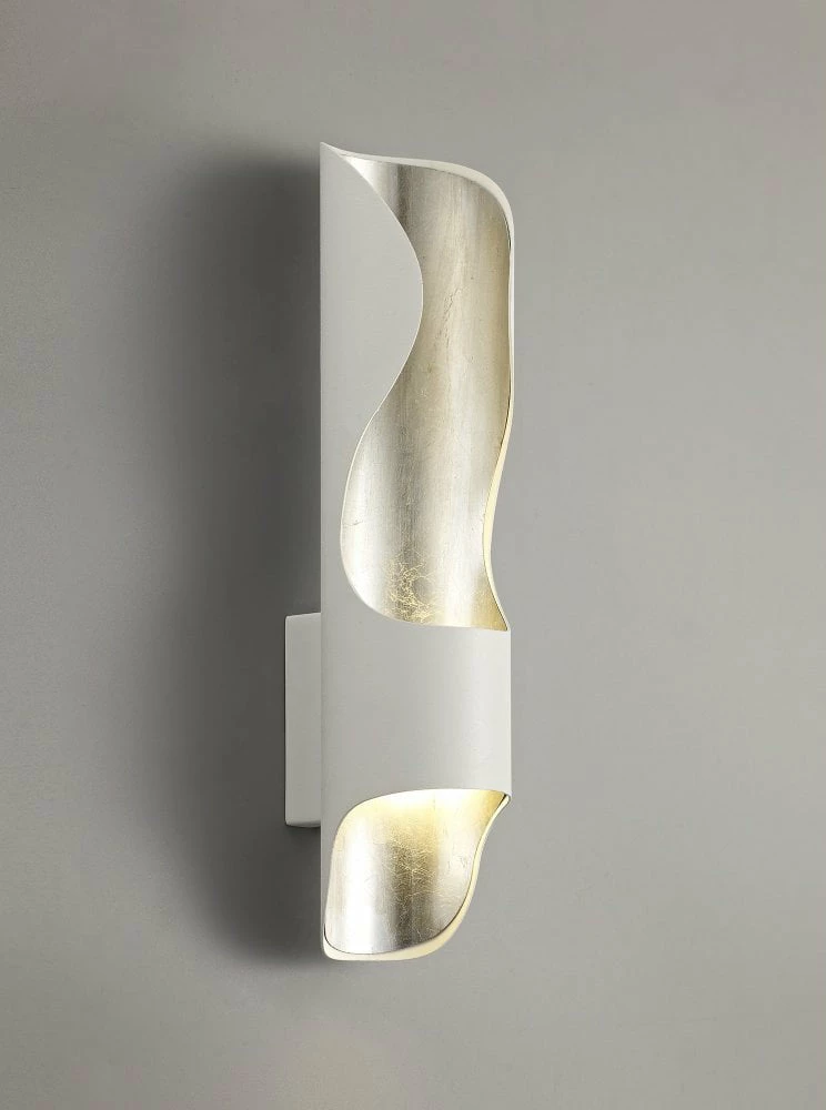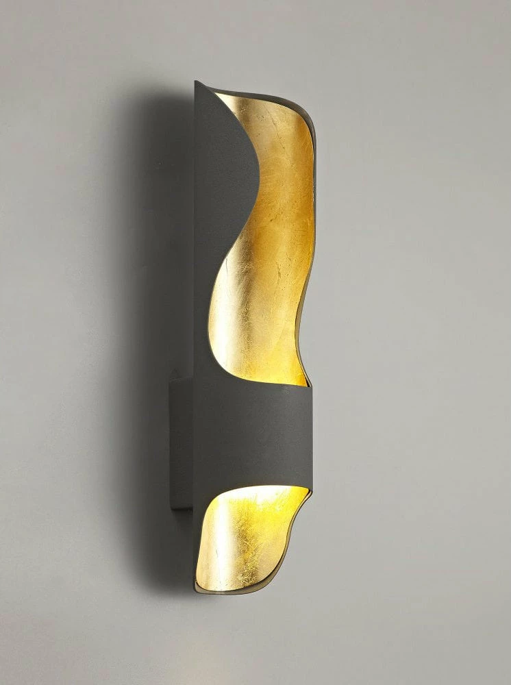 The Dittisham wall lamps available in two colour finishes have a distinctly creative form, the curved tubular shape is cut away at the front displaying in the depth of the cylinder, leaving a comparatively small strip towards the bottom of the wall lamp to conceal the integral LED’s. This modern concept is furthered on one piece by the combination of white and silver leaf colour finishes. The second colour option contrasts the outer anthracite finish with the gold leaf internal creating a slightly more urban, rustic effect.
