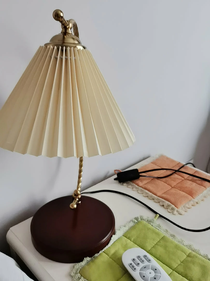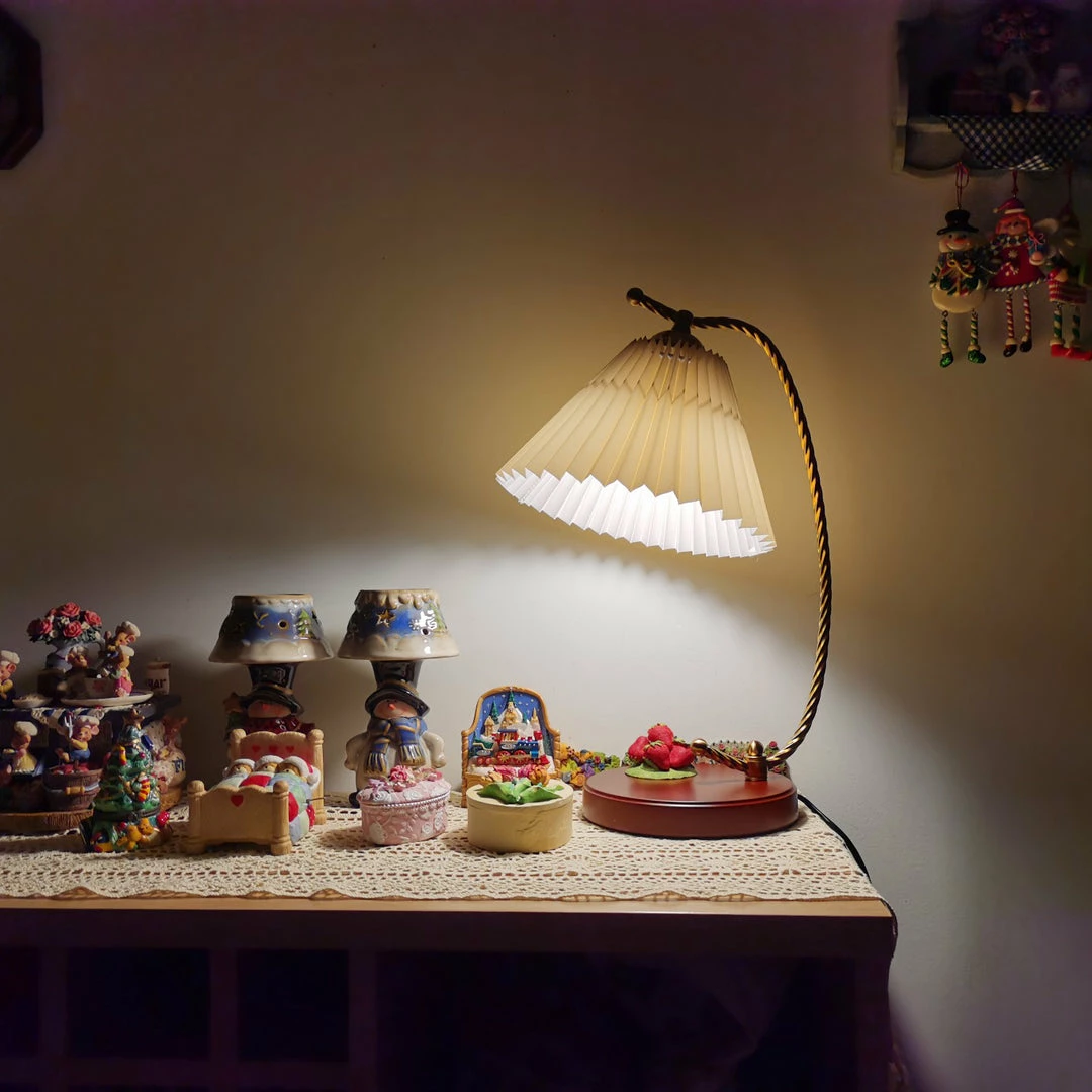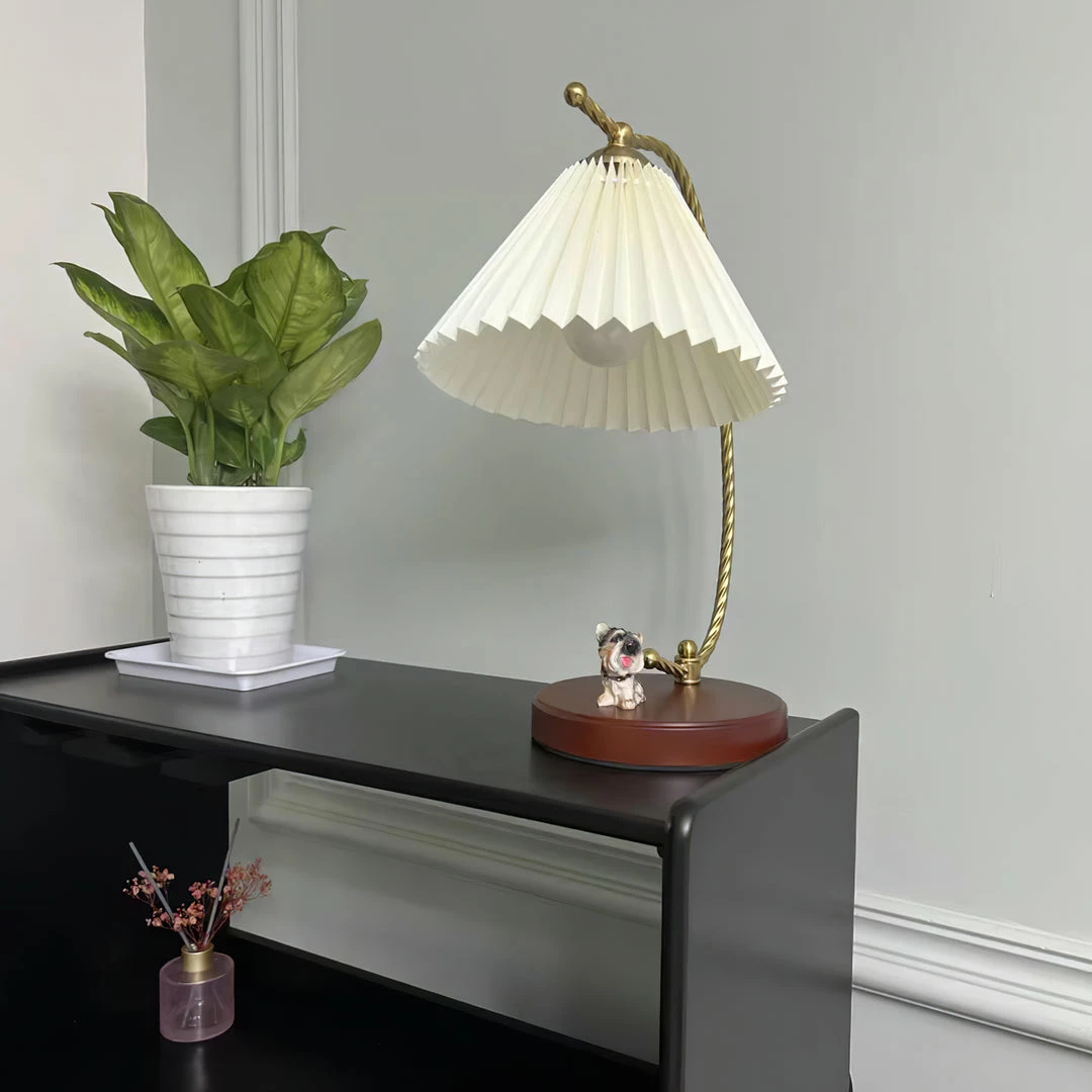 A vintage-inspired lighting option, the Dotty table lamp is characterised by a brown base, wrought iron arm with gold details, and a pleated paper shade. Ideal for desks, or creating low-level lighting in a living area, use the lamp to bring the warm ambience into your home.