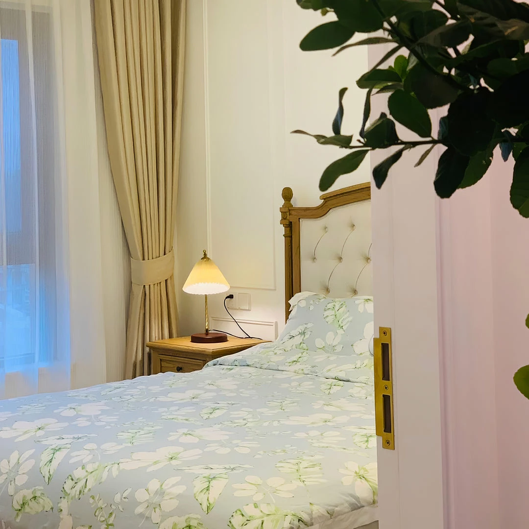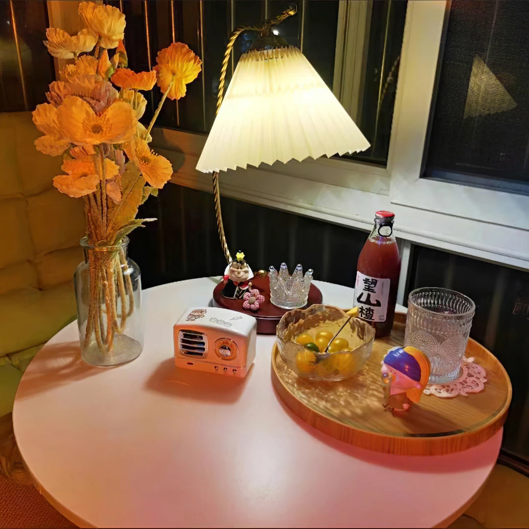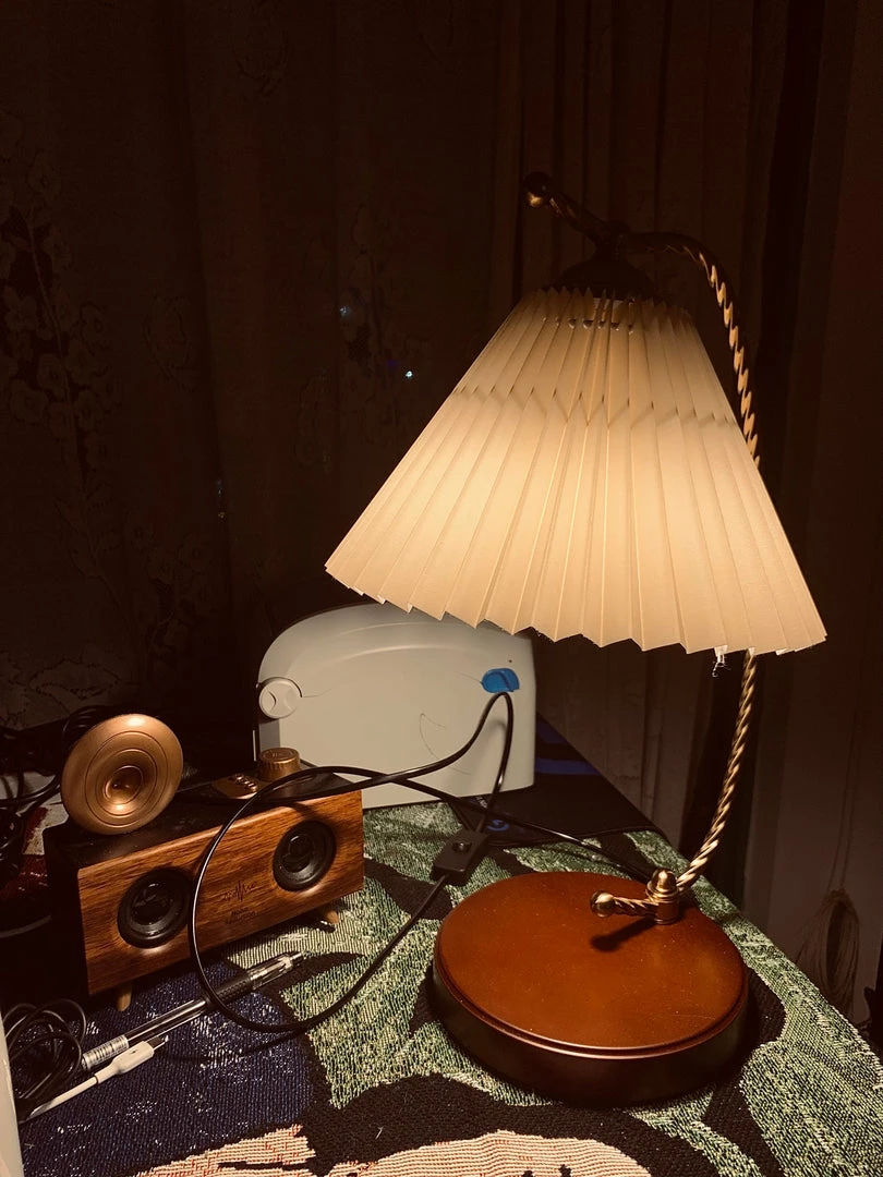 A vintage-inspired lighting option, the Dotty table lamp is characterised by a brown base, wrought iron arm with gold details, and a pleated paper shade. Ideal for desks, or creating low-level lighting in a living area, use the lamp to bring the warm ambience into your home.