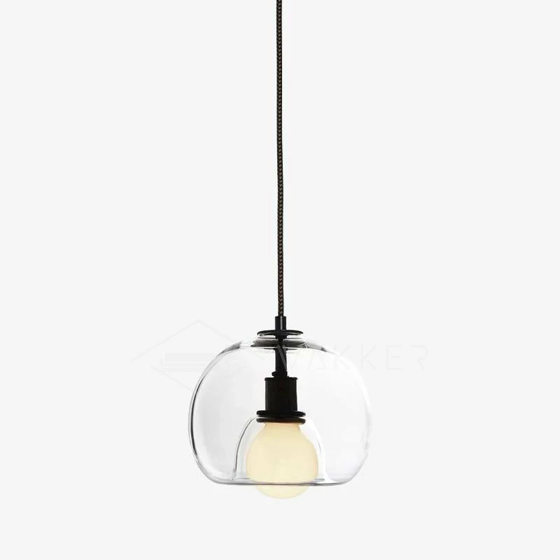 A handblown orb gracefully inverted to house a globe bulb, like a pearl encased in a glass oyster.