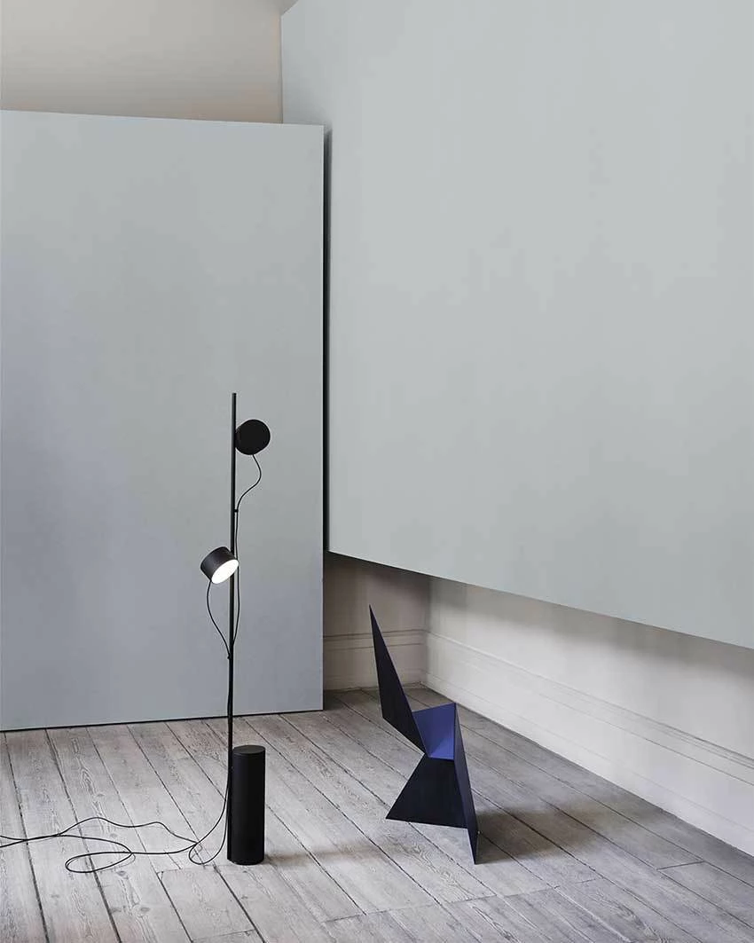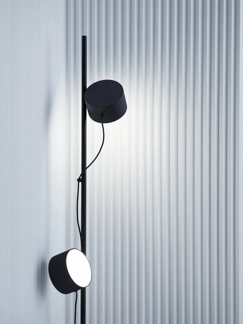 The Post Floor Lamp is an innovative modular lighting design with an archetypal appearance, graphic lines and forward-thinking functionalities. Exploring the utmost flexibility of a magnetic joint, the individual lighting units of the design can be positioned, turned. Use the magnetic cable drops to position the cords on the rod. The Post Floor Lamp comes with two lighting units.
