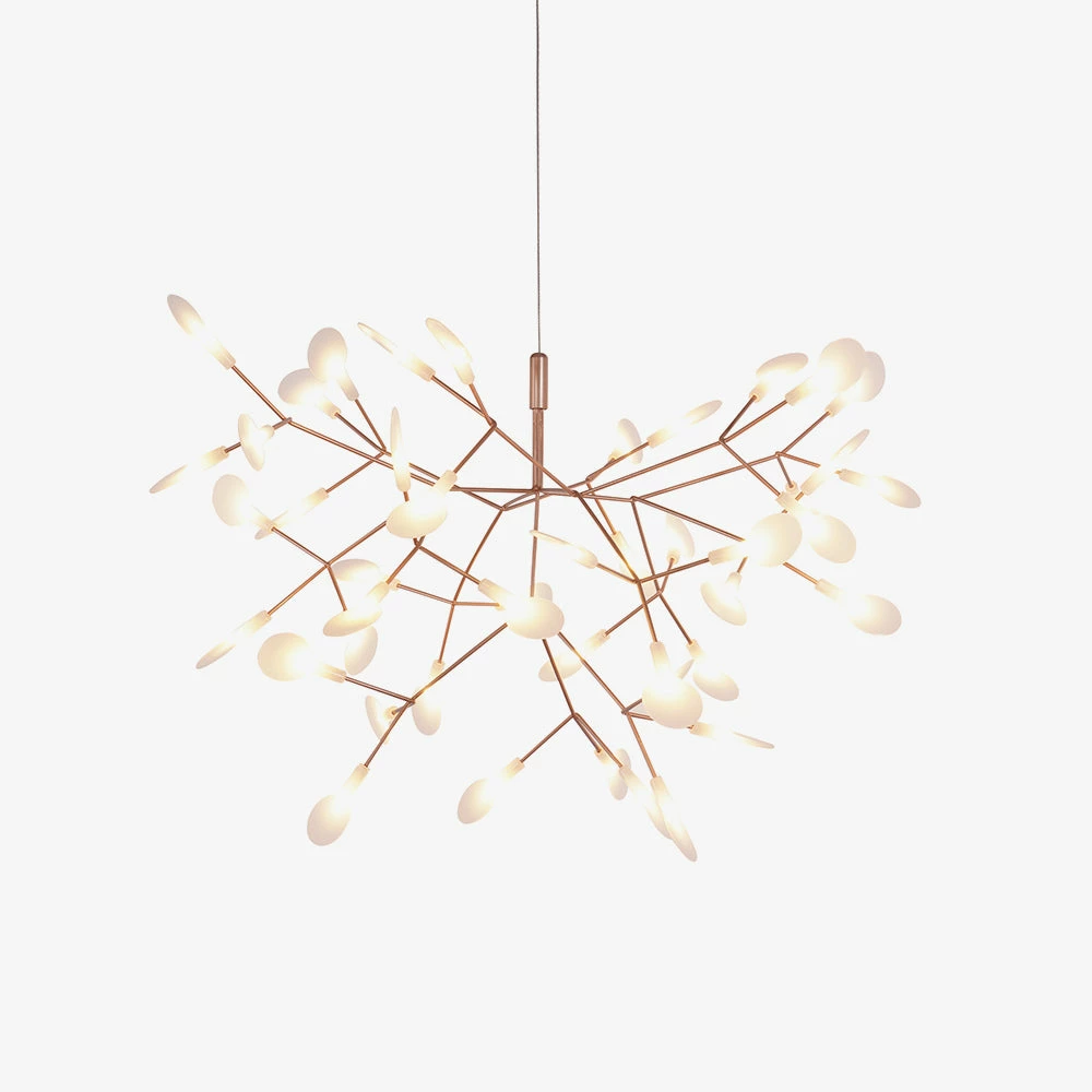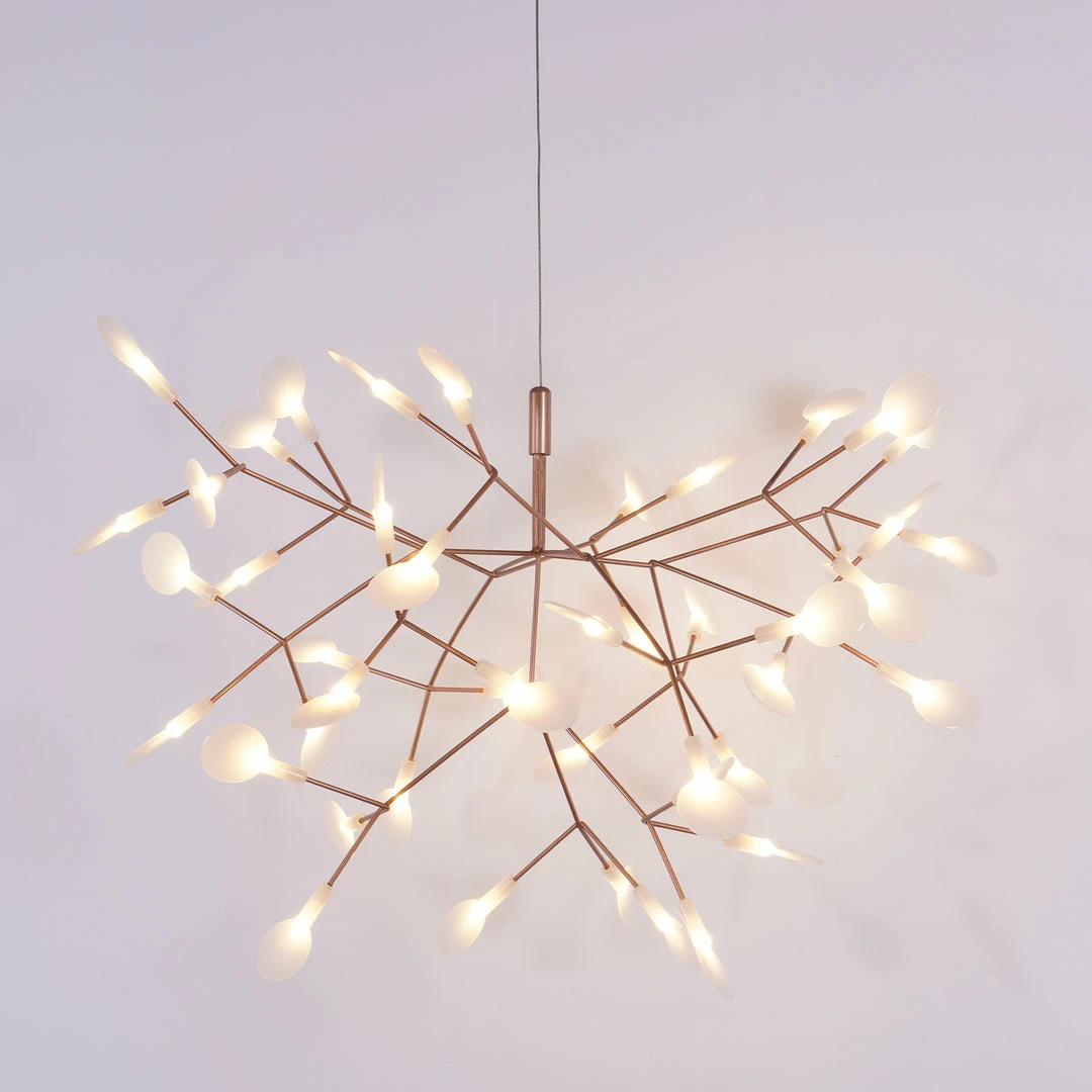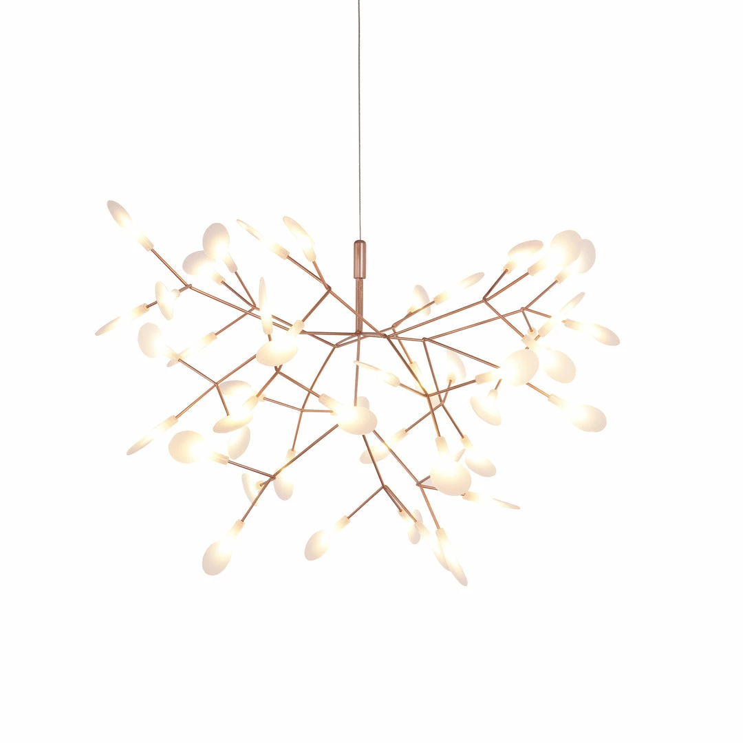 The Heracleum leaves are not frozen in one position. They can be freely re-positioned by rotating them around their stem. Heracleum II provides decorative ambient light. The metal wire frame, polycarbonate lenses and ultra-thin suspension wire.