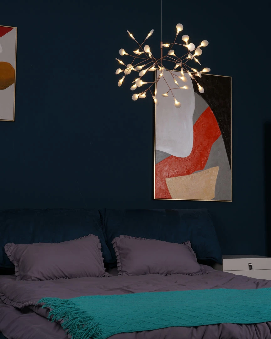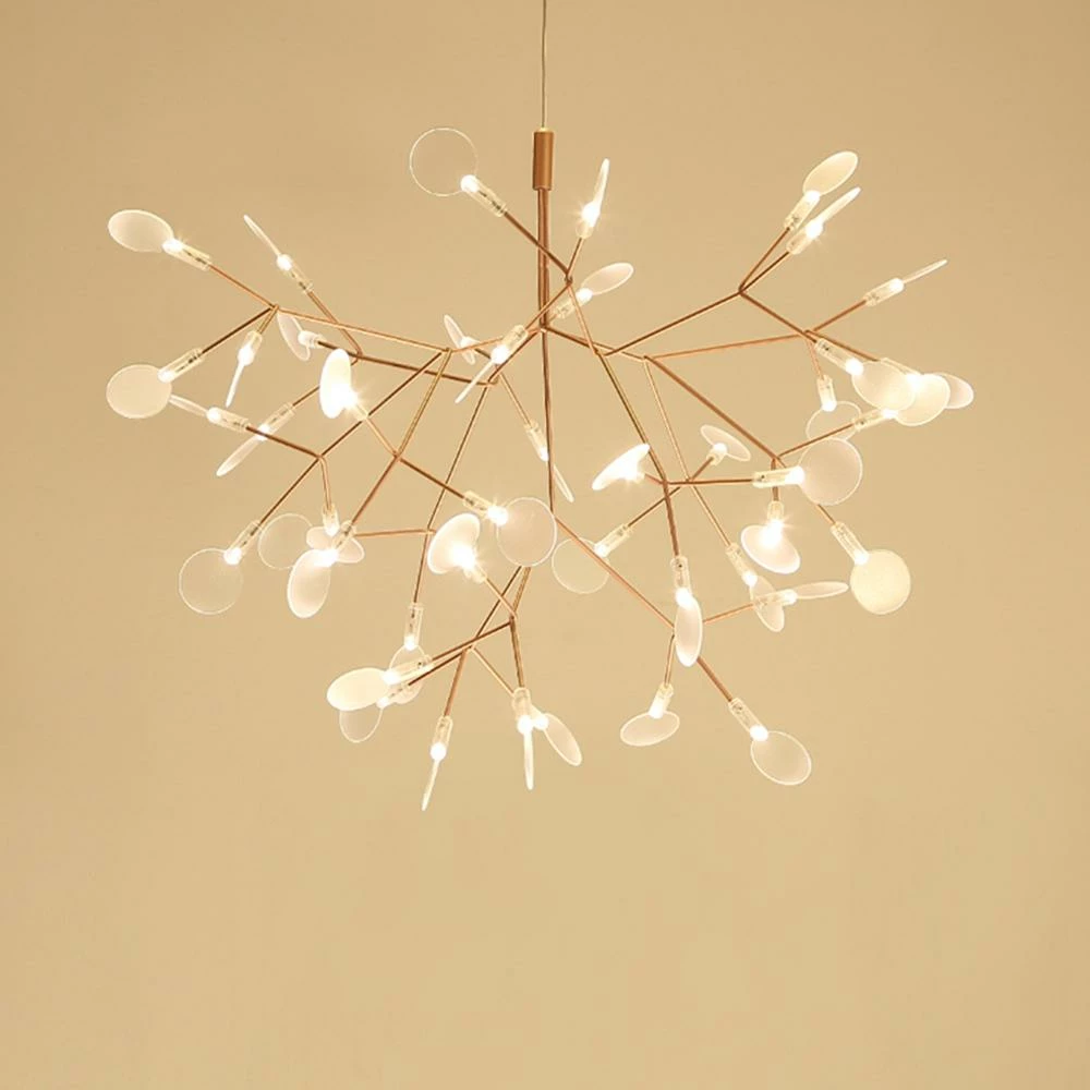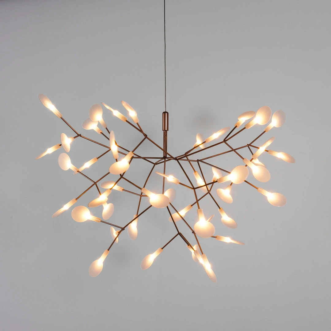 The Heracleum leaves are not frozen in one position. They can be freely re-positioned by rotating them around their stem. Heracleum II provides decorative ambient light. The metal wire frame, polycarbonate lenses and ultra-thin suspension wire.