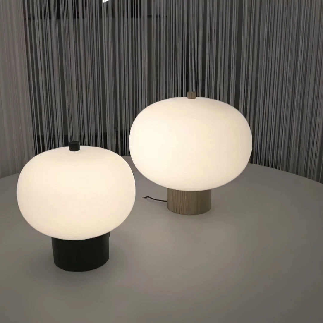 Ilargi lamp takes shape in a subtle and minimalist piece where a wooden wand sits between traditionally hand-blown glass spheres.Its warm, timeless design provides soft, pleasant light that adapts to professional and domestic settings, creating comfortable, natural spaces.