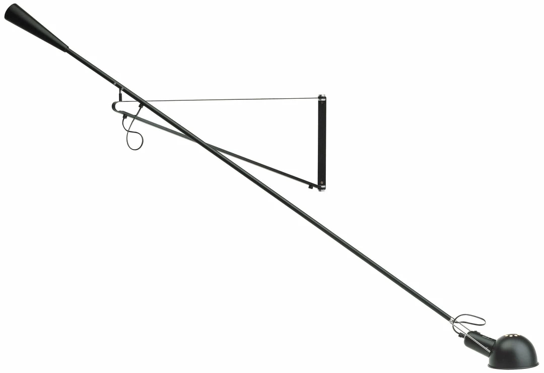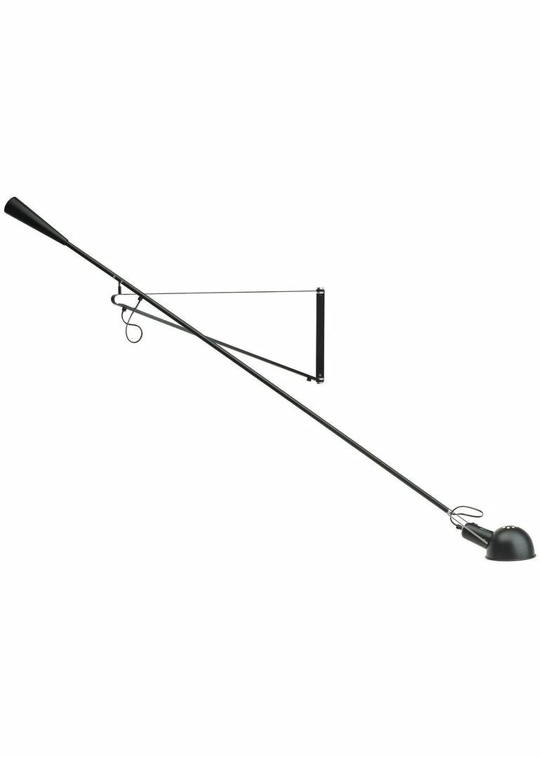 265 Wall lamp providing direct light. Painted metal adjustable arm and reflector. black Painted metal reflector support. Cast iron tapered counterweight. Painted metal wall fixture.