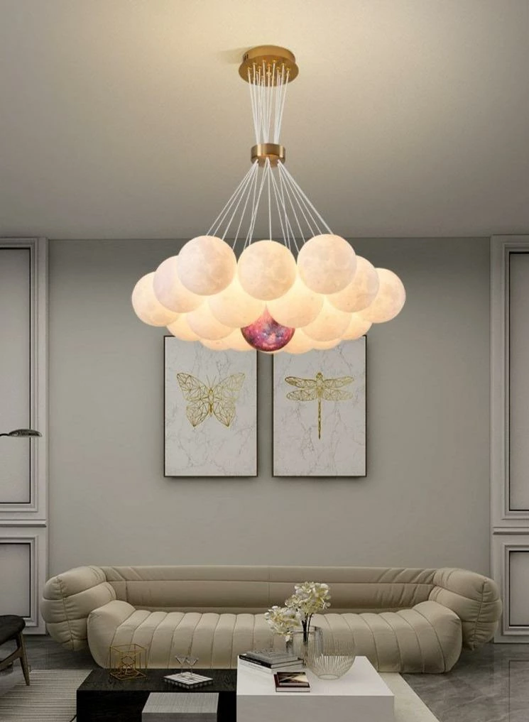 Our Lunar range of pendants takes inspiration from the captivating presence of the moon. The Speckle glass finish provides dramatic monochromatic detailing; echoing the moon’s unique stippled appearance. The more understated finish offers a special elegance with a subtly varying ivory palette. Each glass sphere is expertly handcrafted.