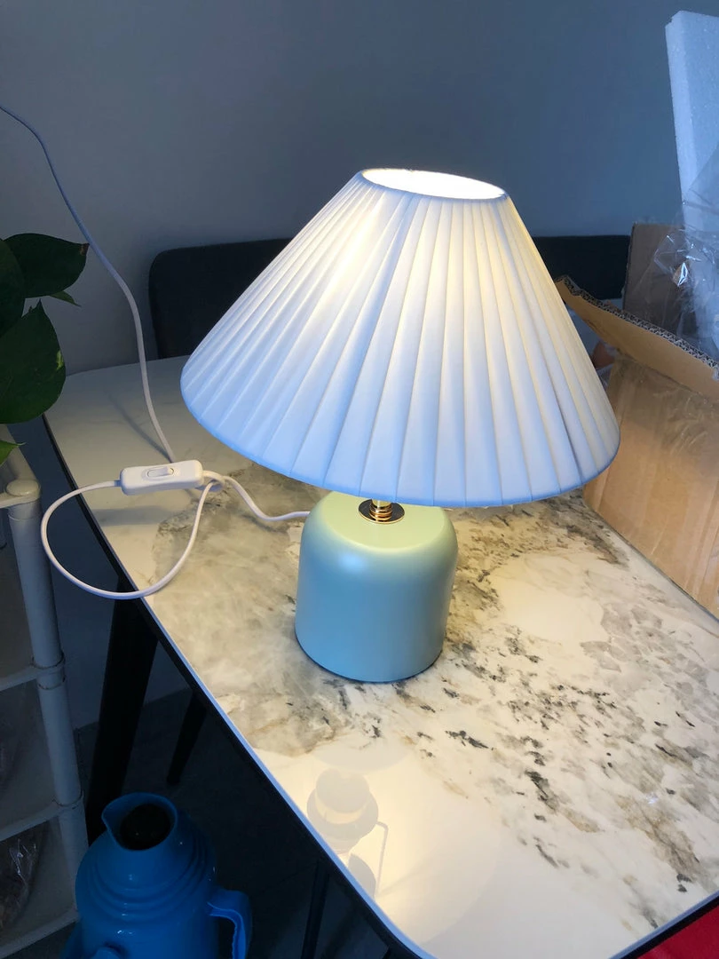 With its beautiful sea-blue finish our Lunitidal Table Lamp has a calming effect upon a space. When lit, the etched surface of the classic ceramic base is accentuated yet further, making it an eye-catching addition to a living room or bedside table.