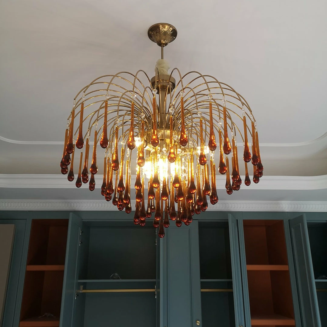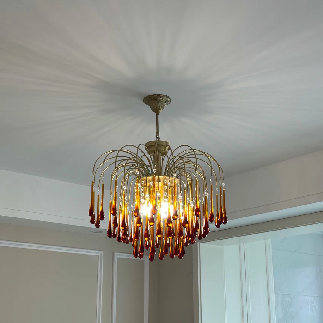 Maltose Chandelier is a stunning blend of vintage elegance and bold silhouettes. This features sleek curved gold finish arms around a decorative central frame, with overlapping tiers of shimmering crystal buttons and drops that create a picturesque cascading light effect and form a dramatic Waterfall effect when illuminated.