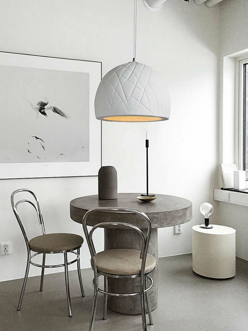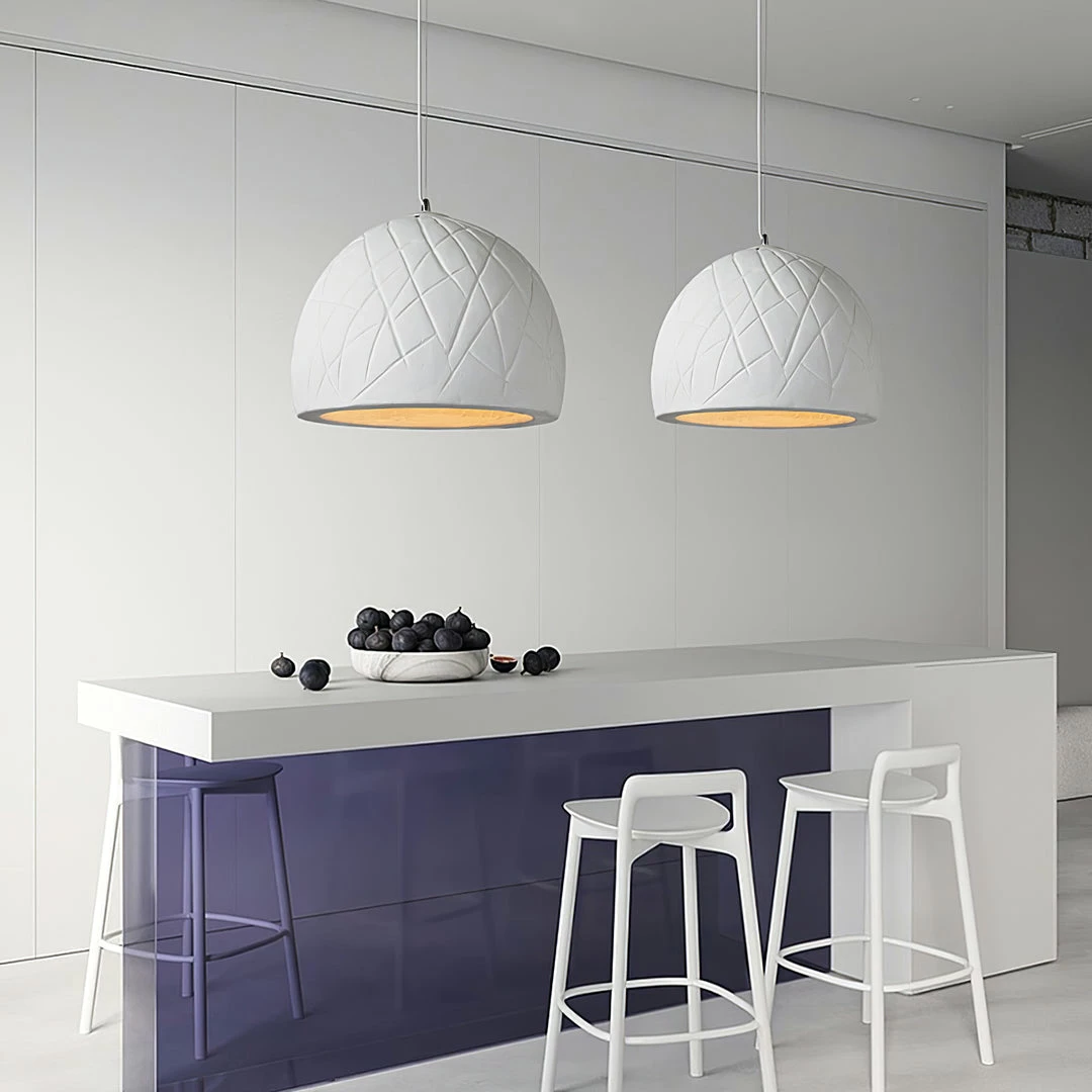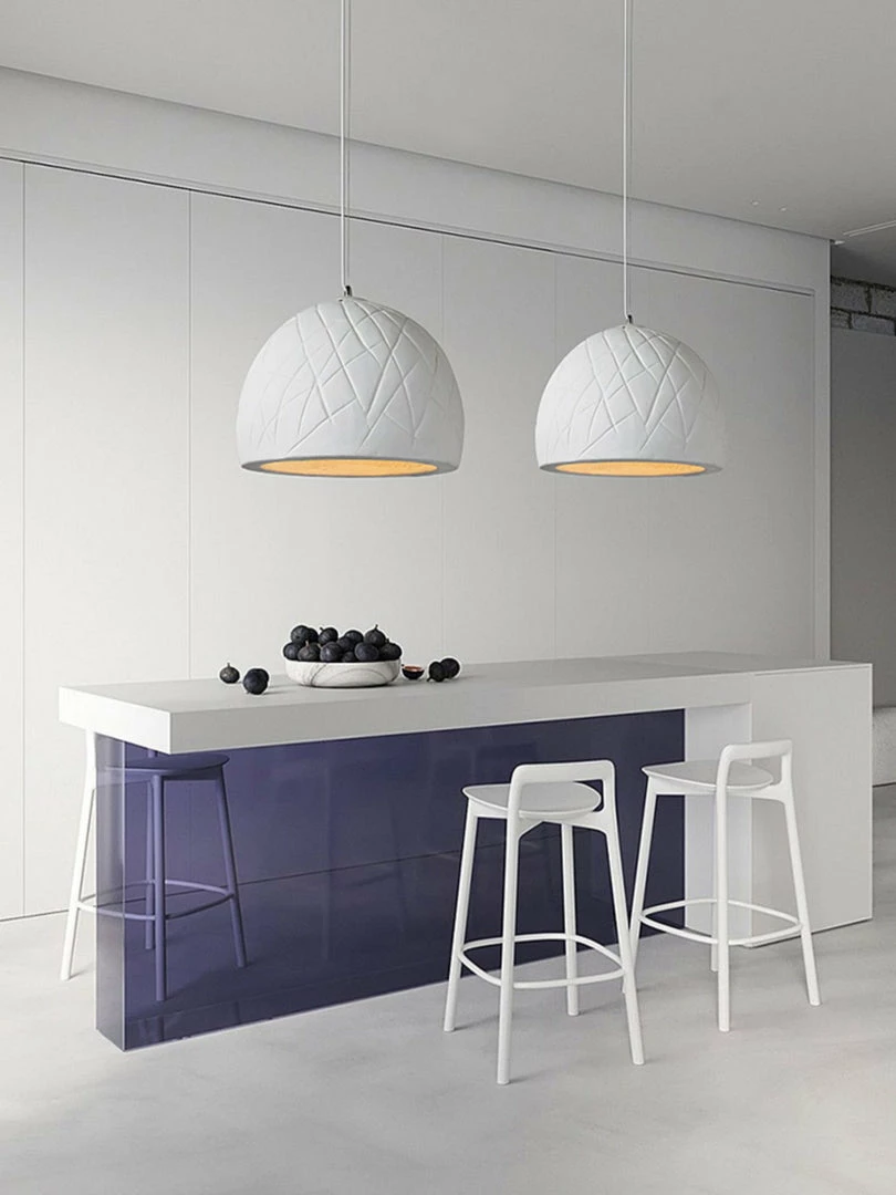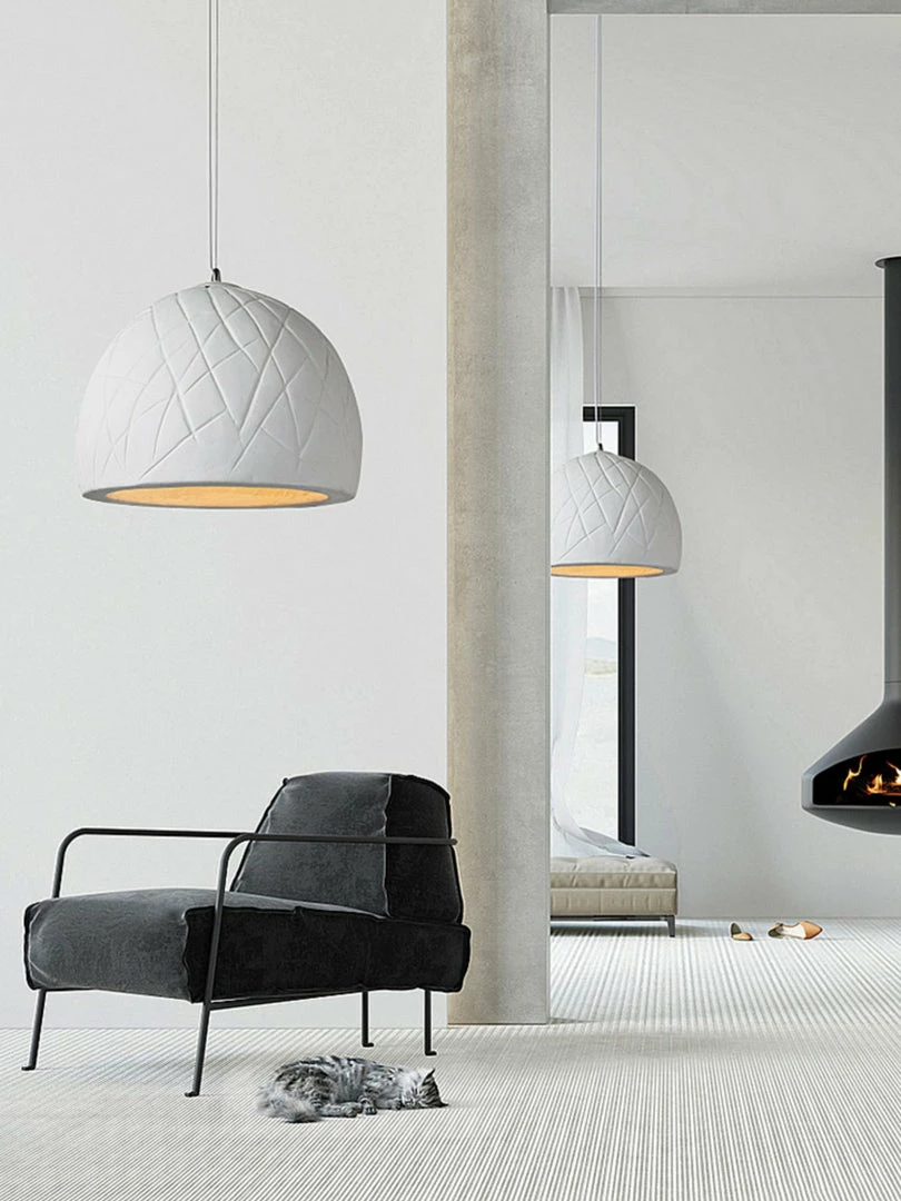 The floating white clay shades have a natural and timeless quality that is both utilitarian and sensual. They throw light textures around them and emit both bounced and direct downward light. The Clay shades and lamp body, by artist , are made of white High density polystyrene.