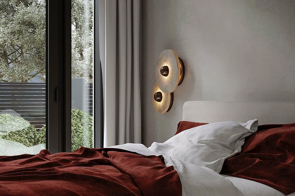 The translucent alabaster planes of the median series are intersected by a fluted brass form, referencing traditional middle eastern jewelry while pushing it through a futurist lens. the stone glows from a light source that remains hidden, illuminating the relationship between the solid and the permeable.