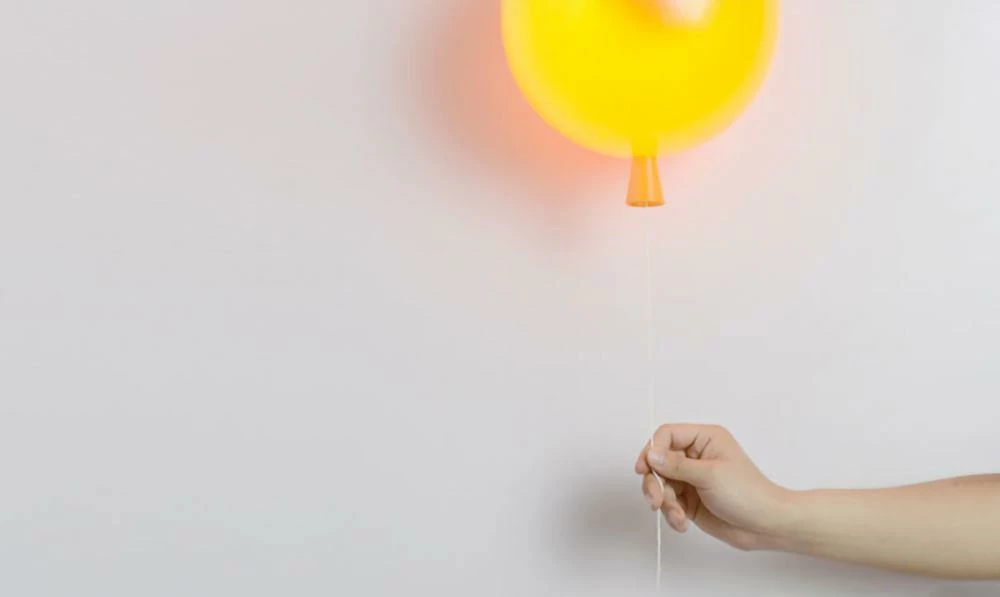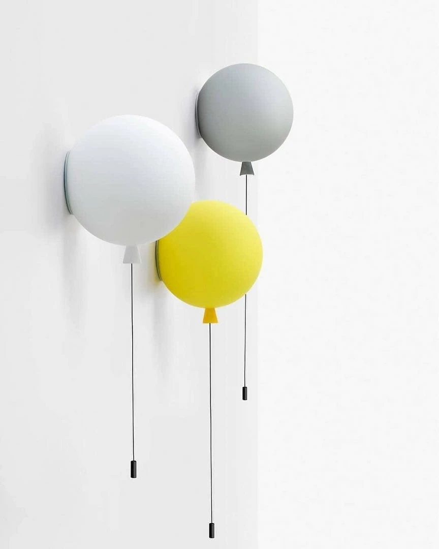 The Memory Wall Light awakens the imagination and recalls a carefree childhood. The illusion of an inflated balloon is flawless, right down to the dangling string which switches the light on and off. Available in three sizes in a variety of colors.