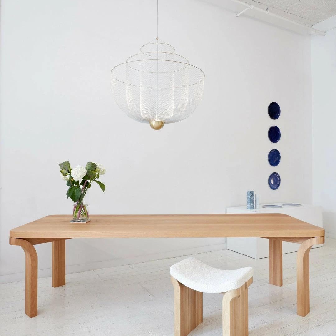 By re-examining these materials, he comes to new aesthetic qualities and applications of the materials. The beautifully designed Meshmatics Hanging lamp is a perfect example of this; this is namely made of metal wire. a machine and tools. With his own invented equipment, with the majestic Meshmatics Hanging lamp as a result.