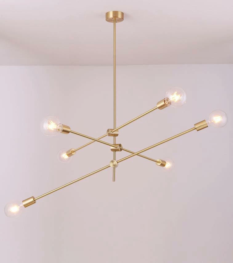 Our Mobile Chandelier’s long arms adjust to different angles, transforming its modern profile from streamlined to dramatic in a few easy steps. Pair it with clear, oversized bulbs for an eye-catching look in the dining room or above a kitchen island.