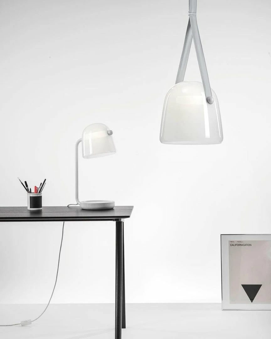 The Mona collection is based on the concept of penetrating forms. The light source boldly traverses the ample volume of smooth handblown glass to reveal the thrilling tension inherent in the design. The collection’s essence, however, lies in its unconventional construction and refined combination of materials. It also boasts tubular LED light sources, each with a different color temperature.