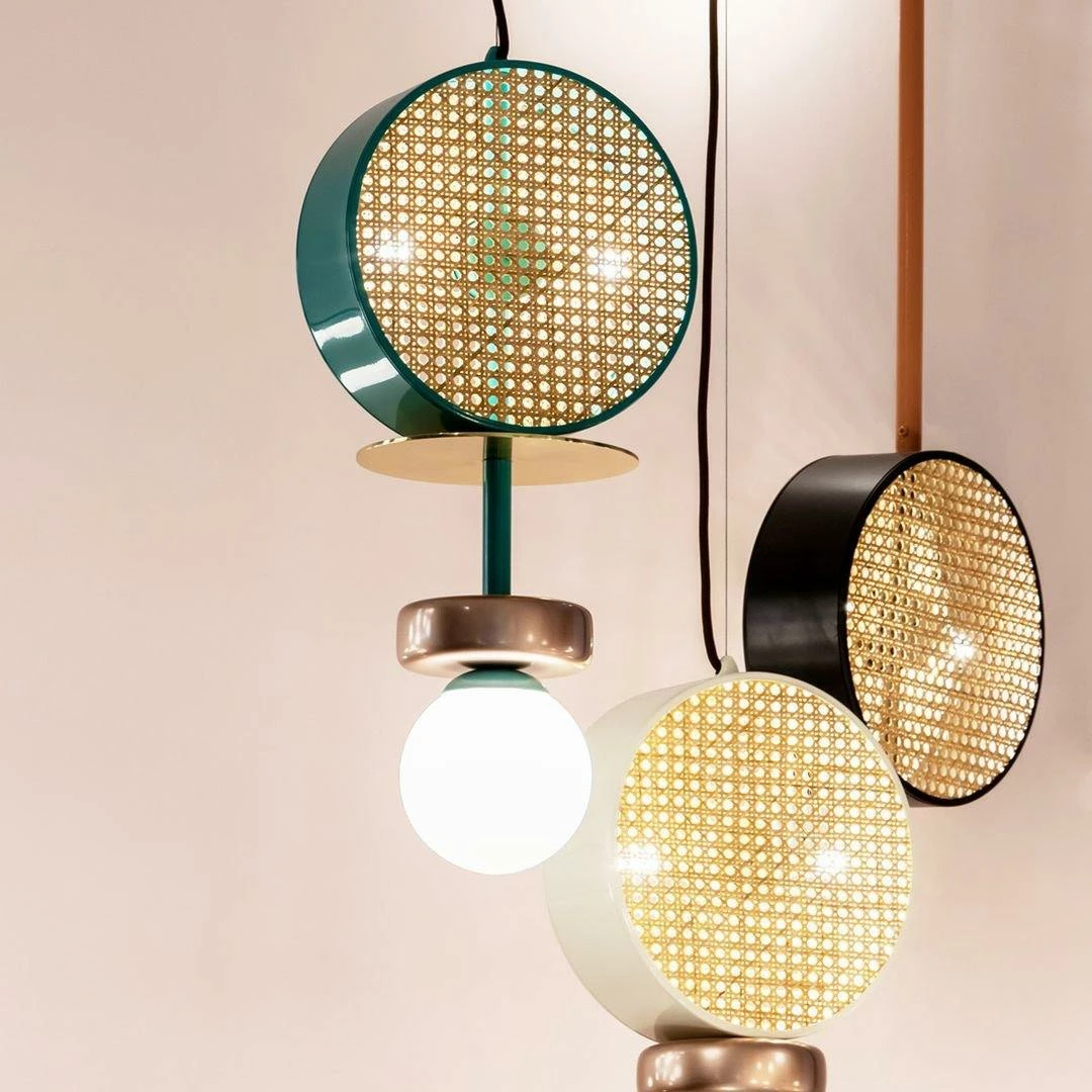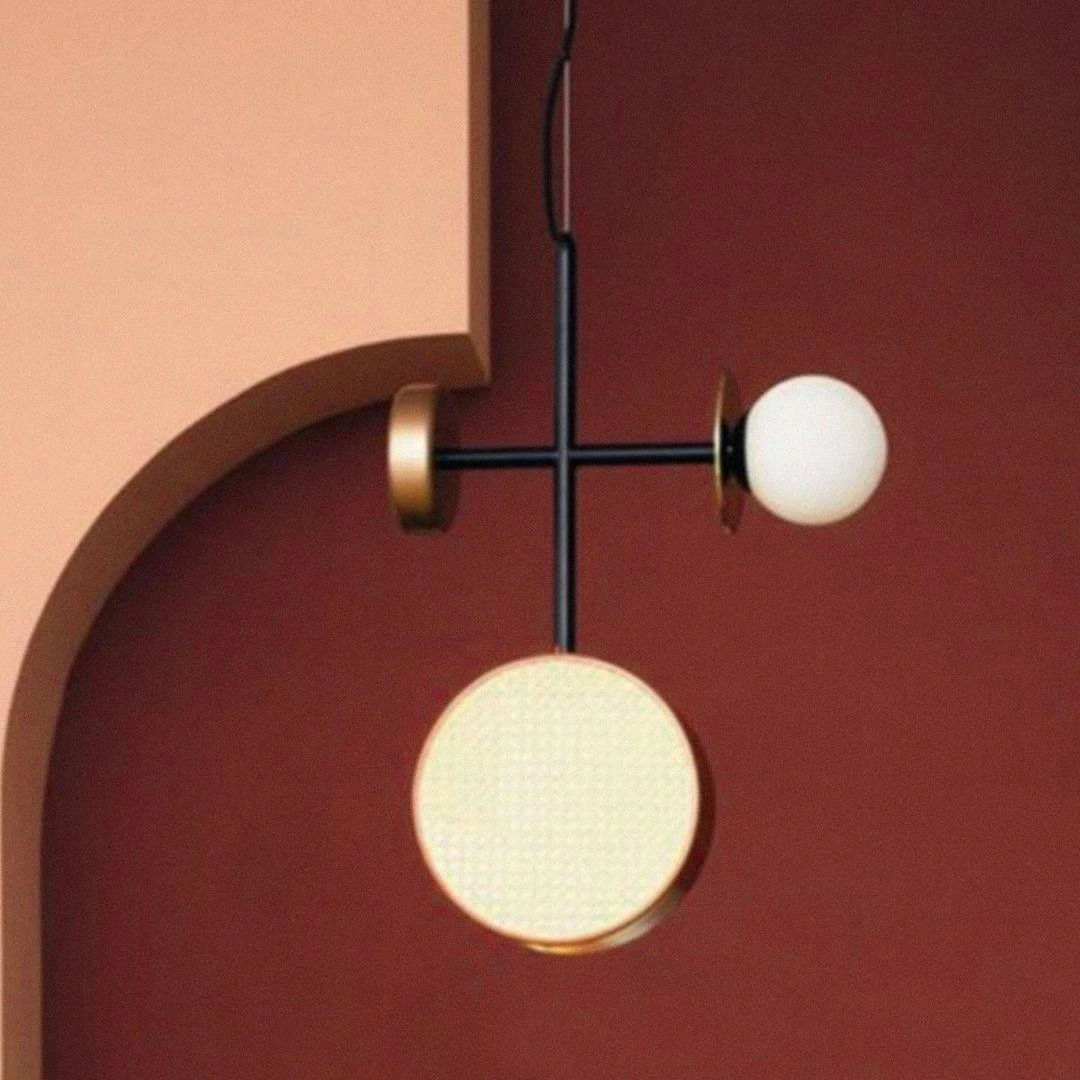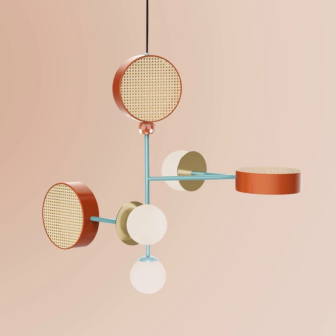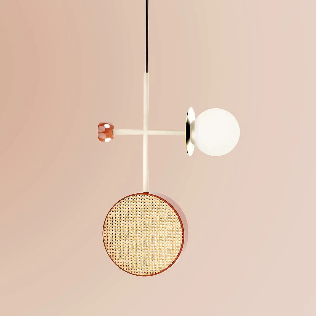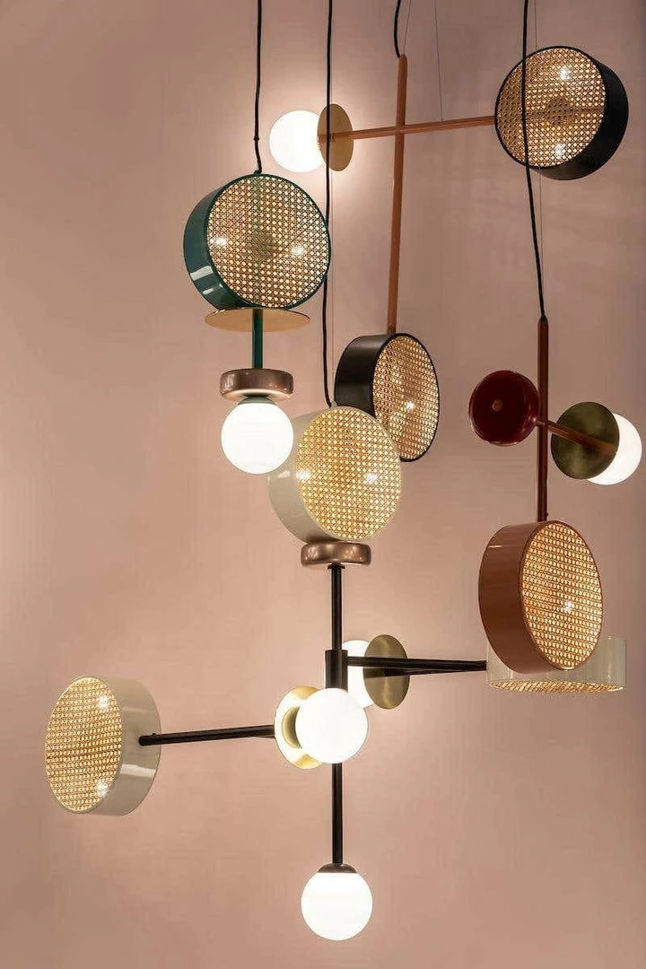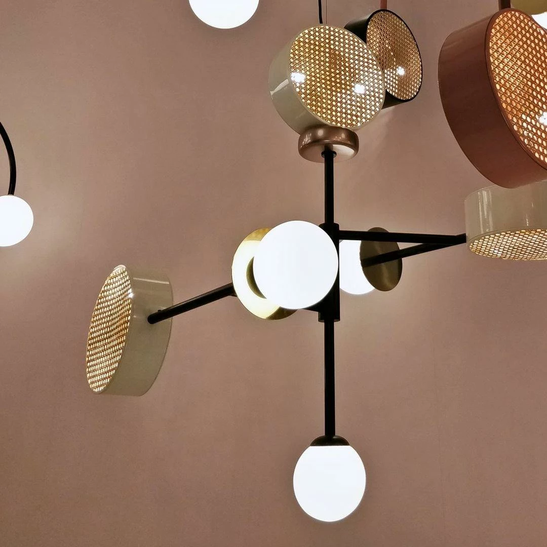 Monaco is a playful and sculptural suspension light created . The light features a metal structure, with glass spheres encasing lighting elements and decorative metal drums covered with rattan, resulting in an abstract shape that resembles a mobile sculpture. Monaco is a spectacular statement light which works well in both residential and commercial spaces from living rooms and dining rooms to lobbies, restaurants and reception areas.