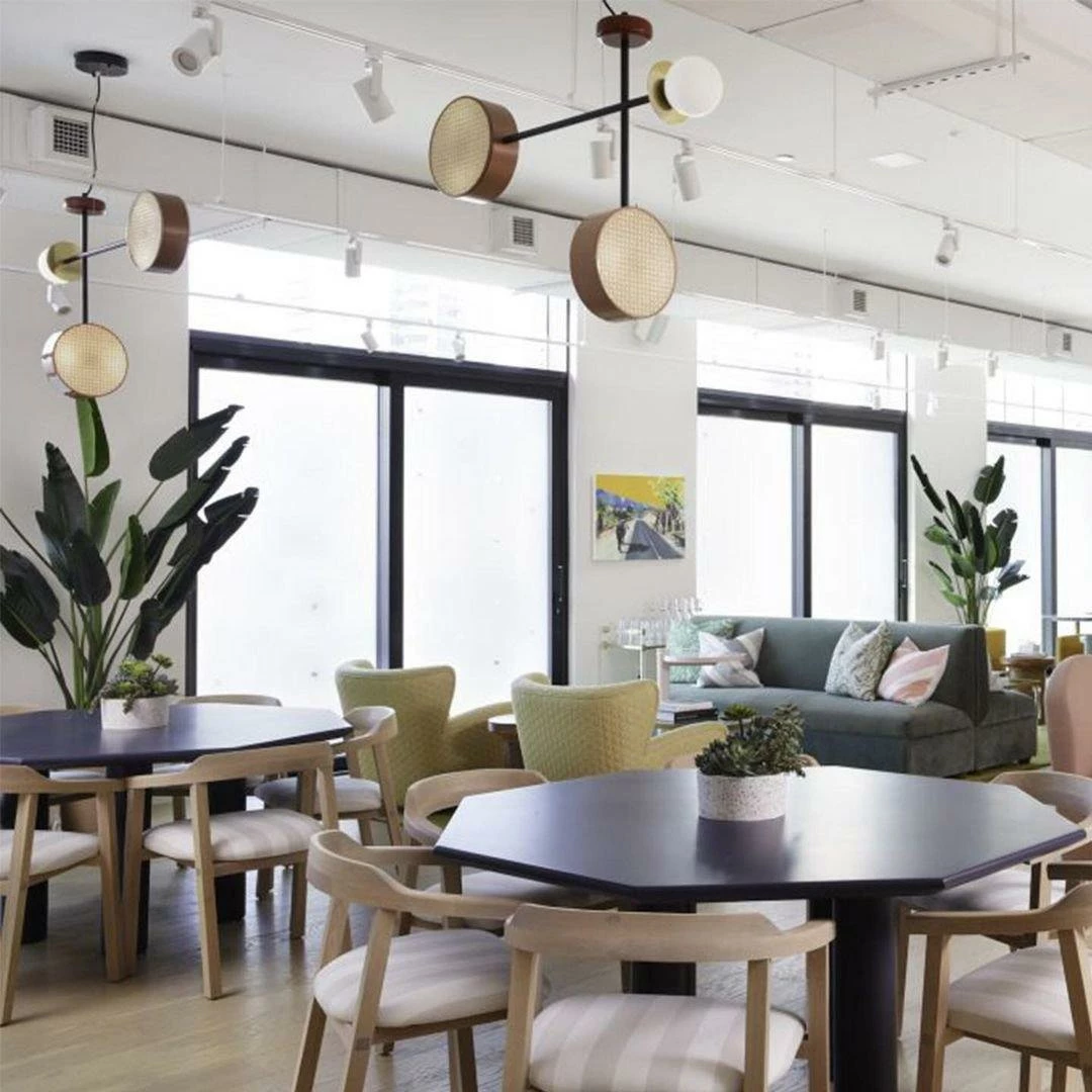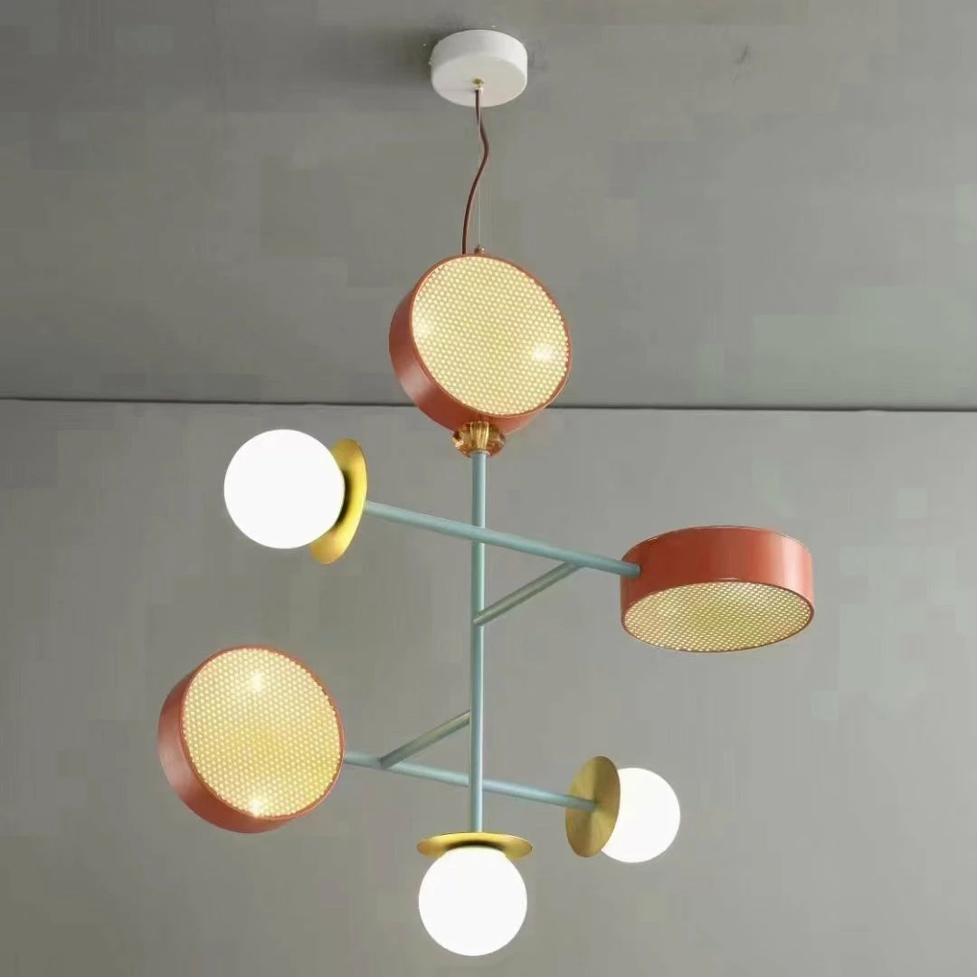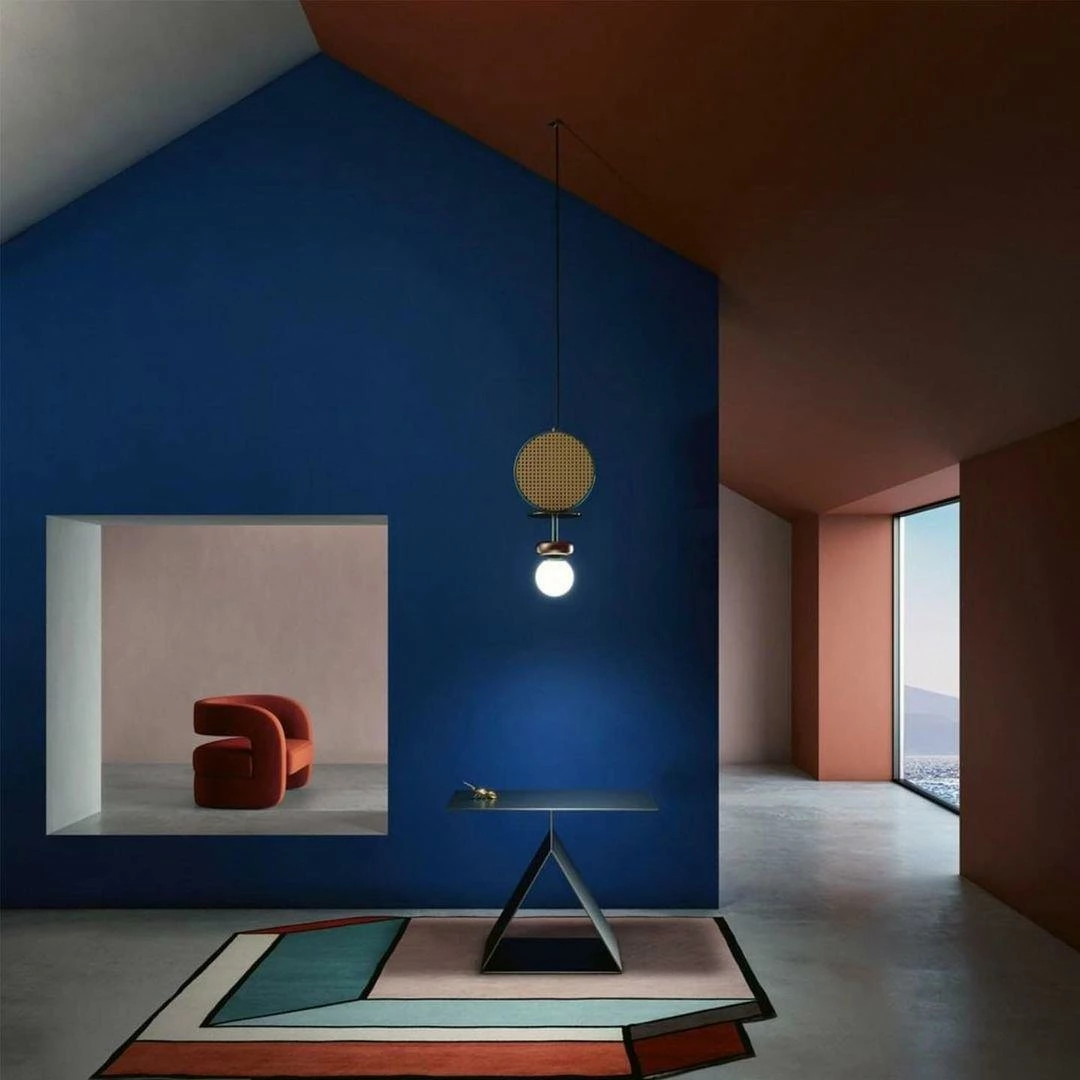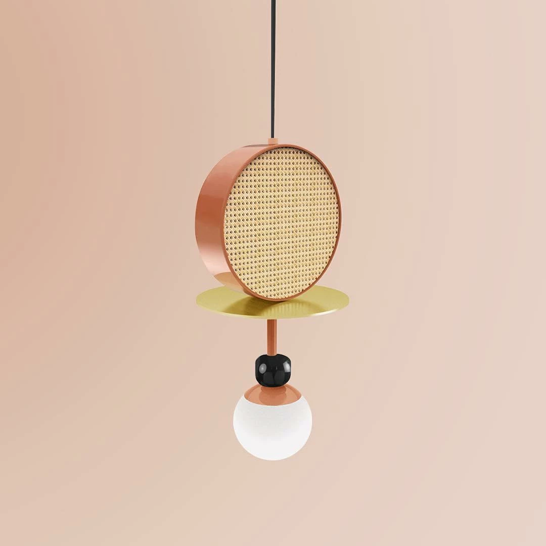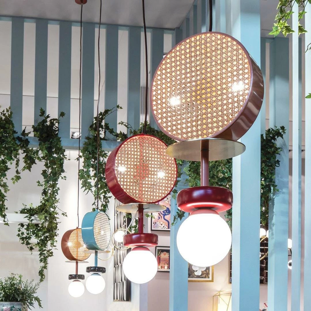 Monaco is a playful and sculptural suspension light created . The light features a metal structure, with glass spheres encasing lighting elements and decorative metal drums covered with rattan, resulting in an abstract shape that resembles a mobile sculpture. Monaco is a spectacular statement light which works well in both residential and commercial spaces from living rooms and dining rooms to lobbies, restaurants and reception areas.