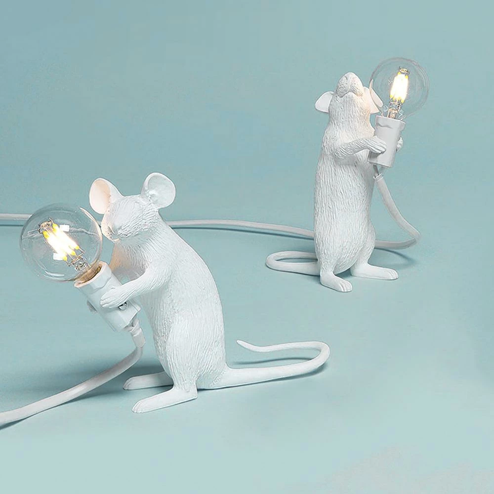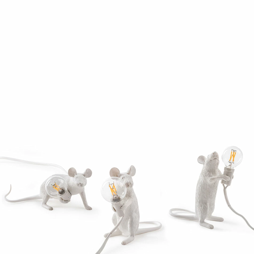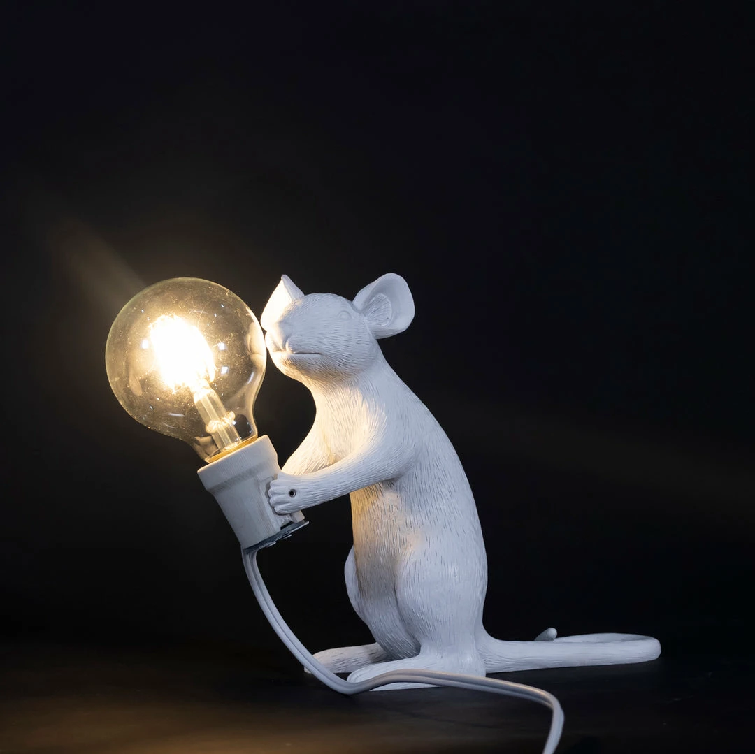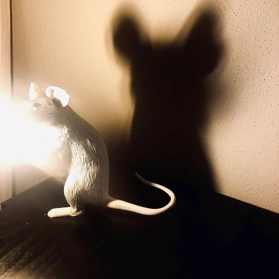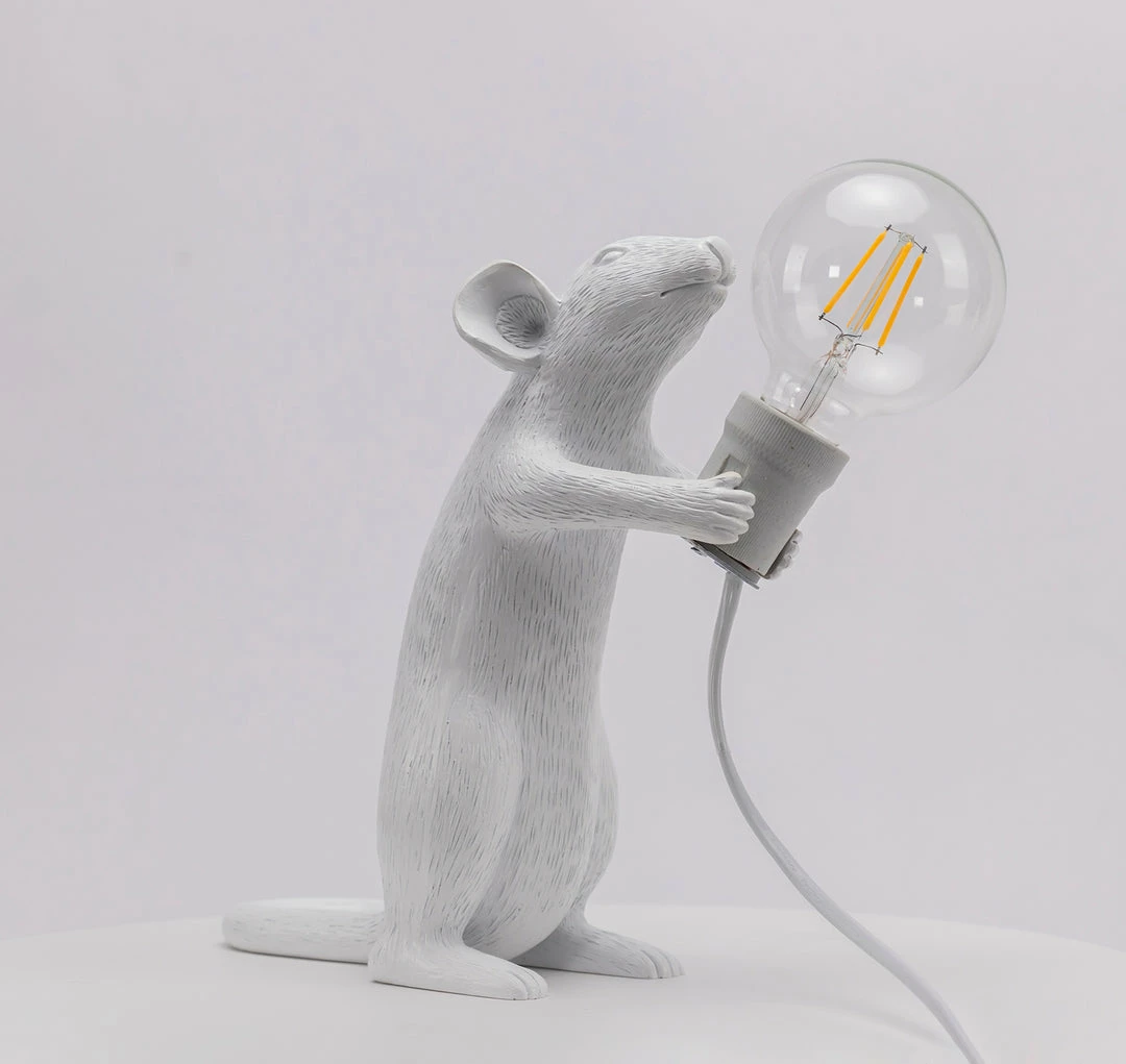 Three little white mice with a very realistic finishing. They are Step, Lop and Mac and they run around the house looking for bizarre objects. They light up their way at night with their little bulbs. Outlandish sculpture that will not go unnoticed.