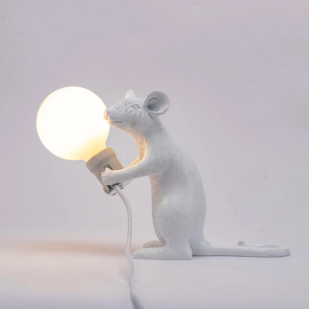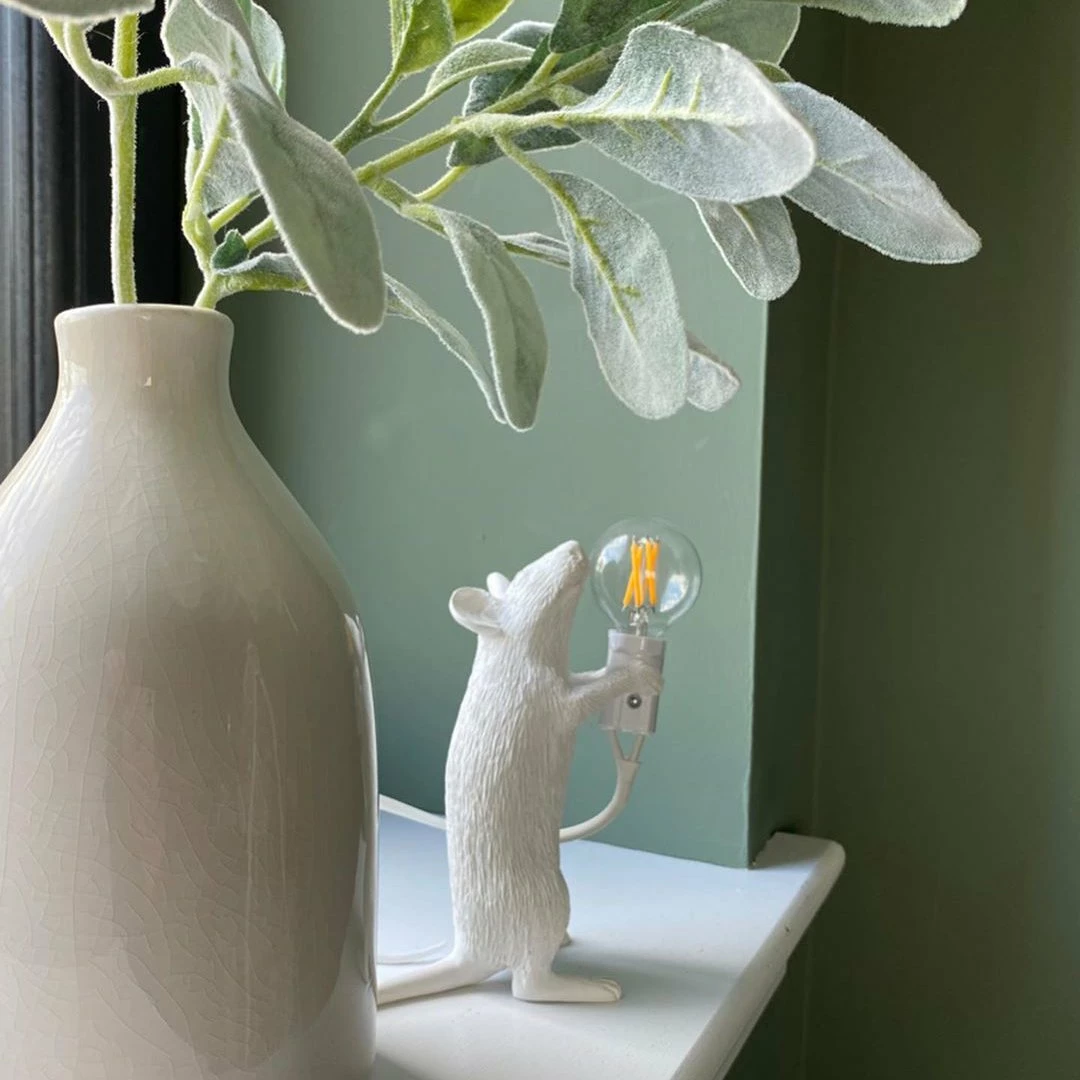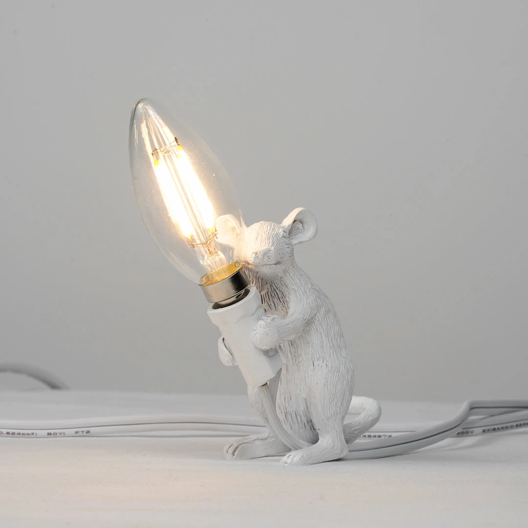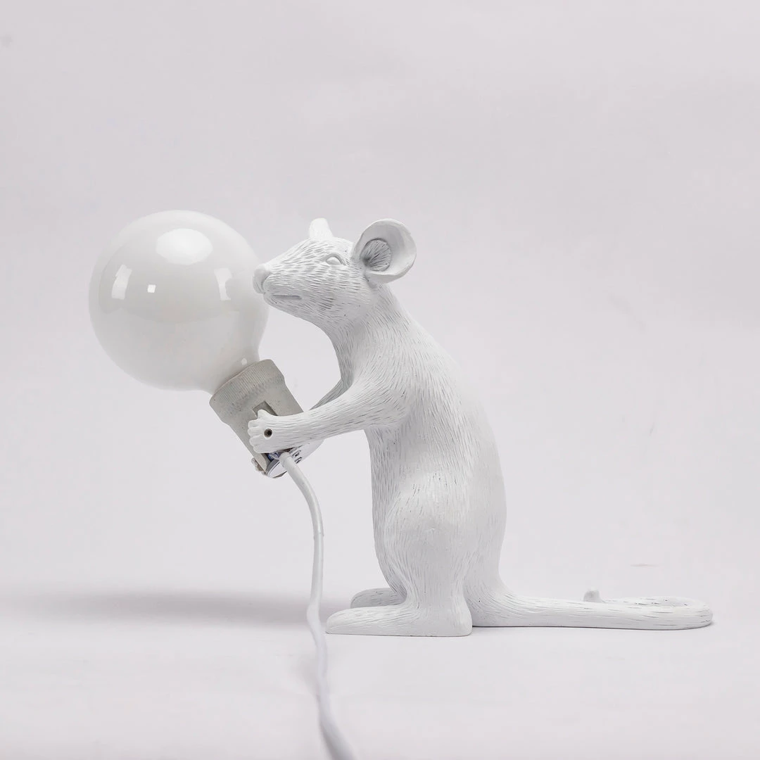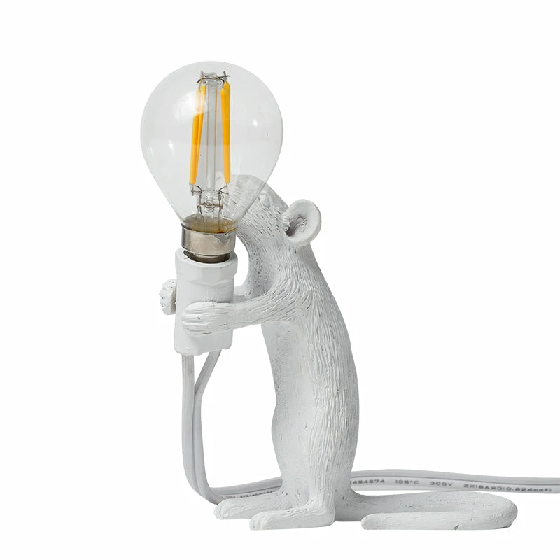 Three little white mice with a very realistic finishing. They are Step, Lop and Mac and they run around the house looking for bizarre objects. They light up their way at night with their little bulbs. Outlandish sculpture that will not go unnoticed.