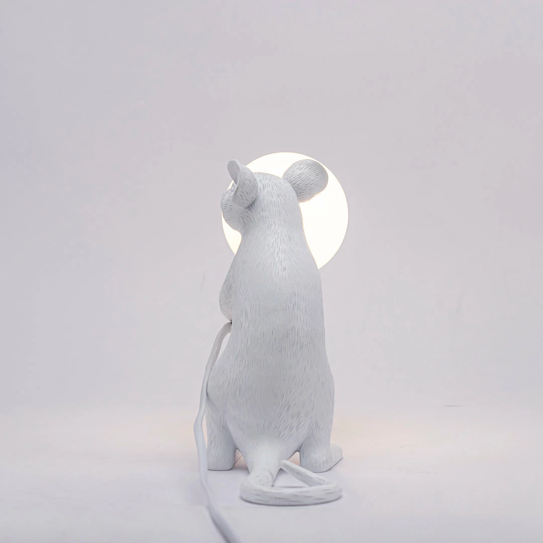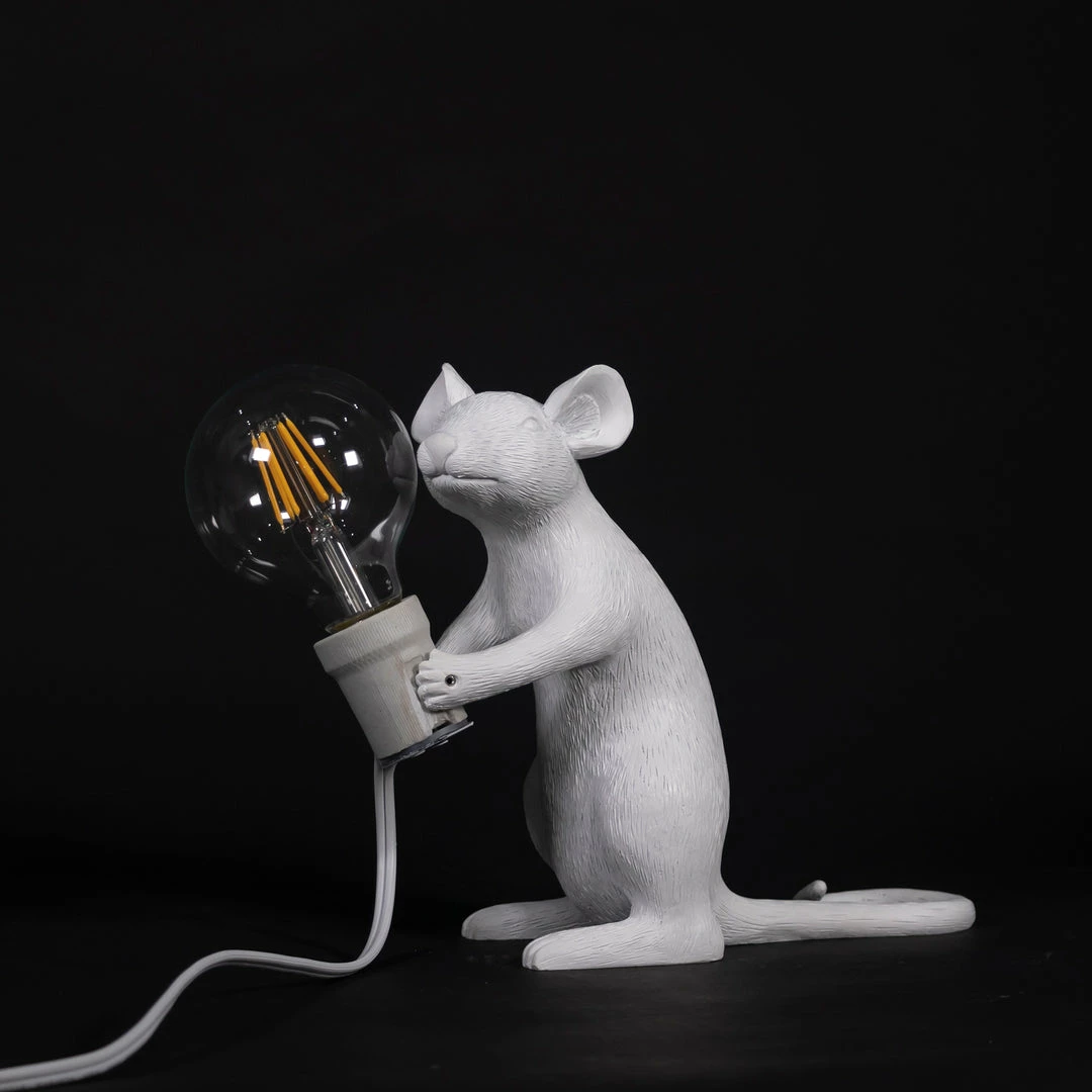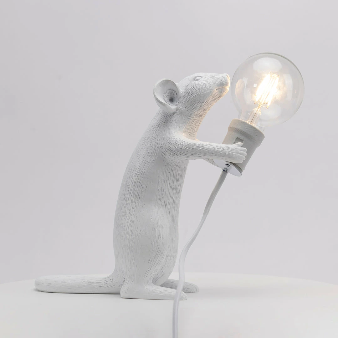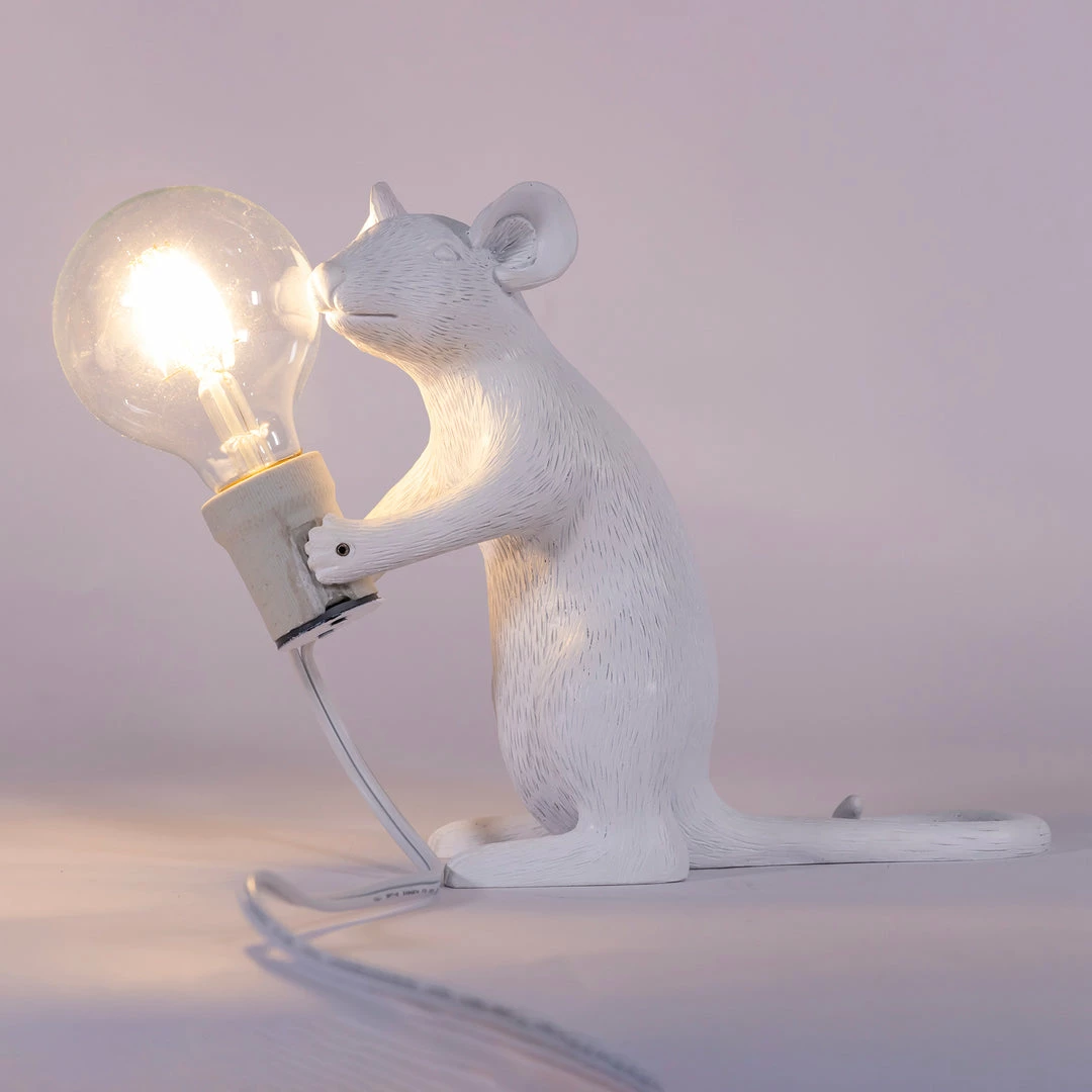 Three little white mice with a very realistic finishing. They are Step, Lop and Mac and they run around the house looking for bizarre objects. They light up their way at night with their little bulbs. Outlandish sculpture that will not go unnoticed.