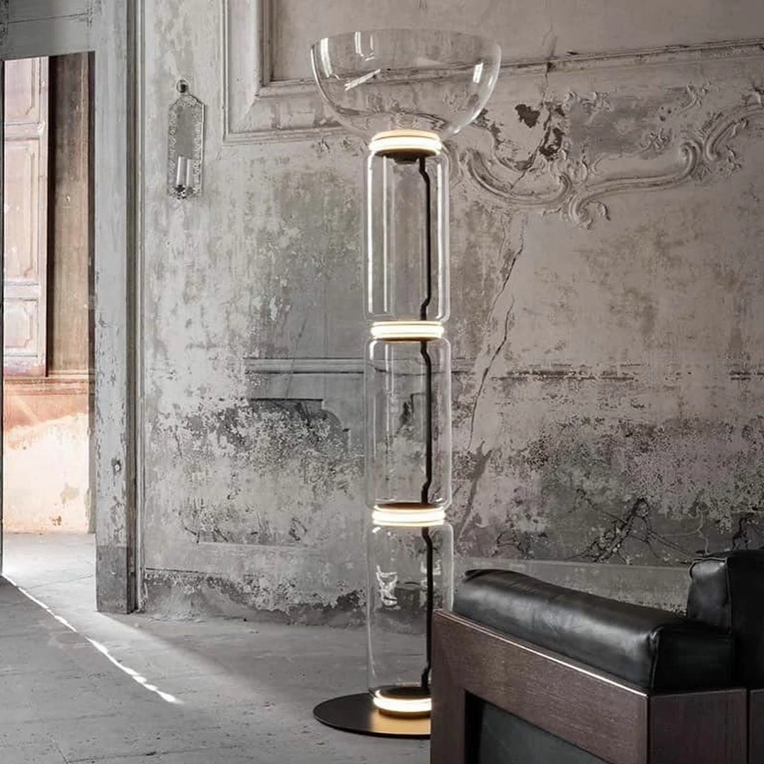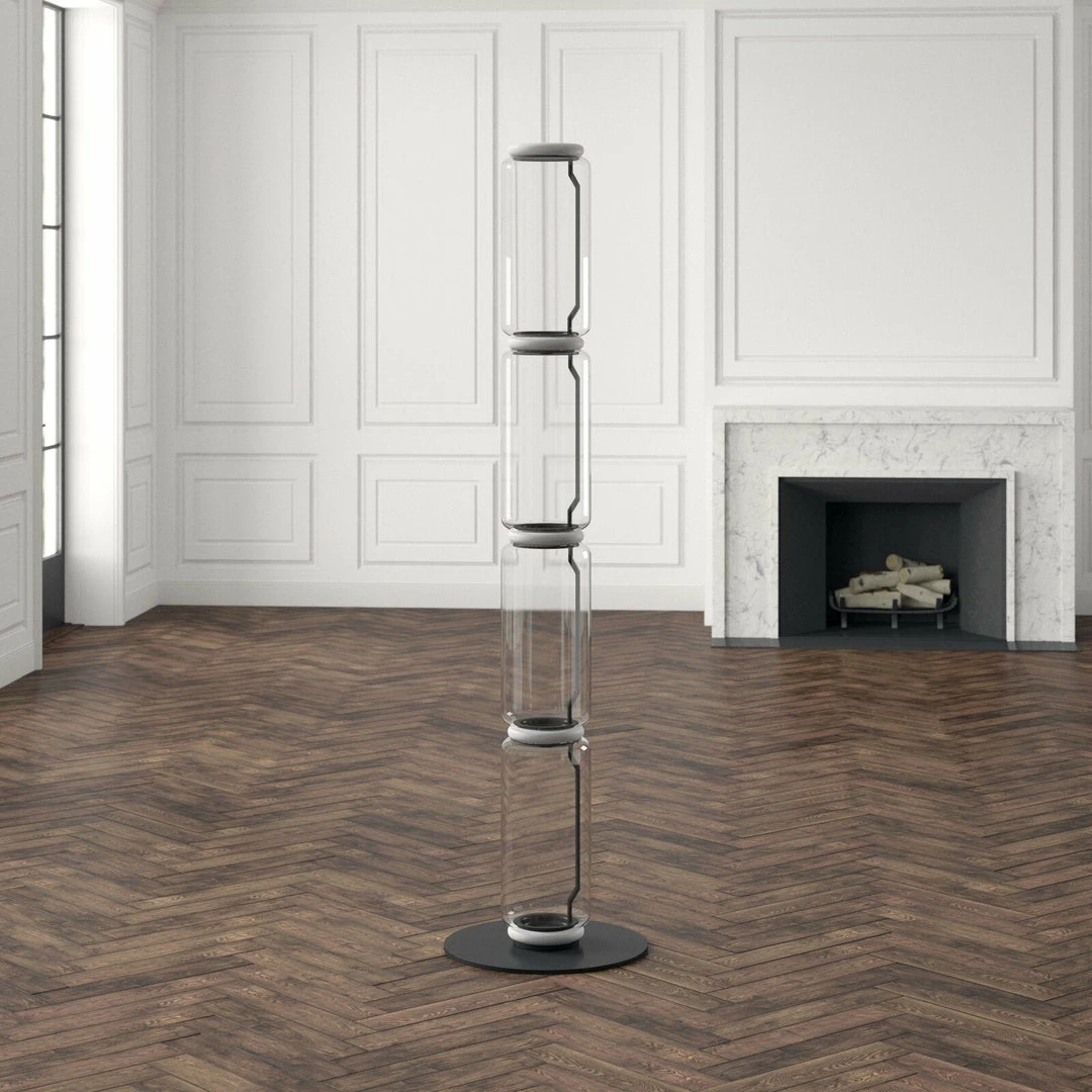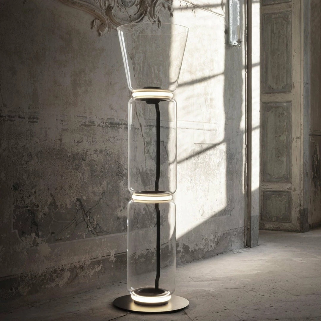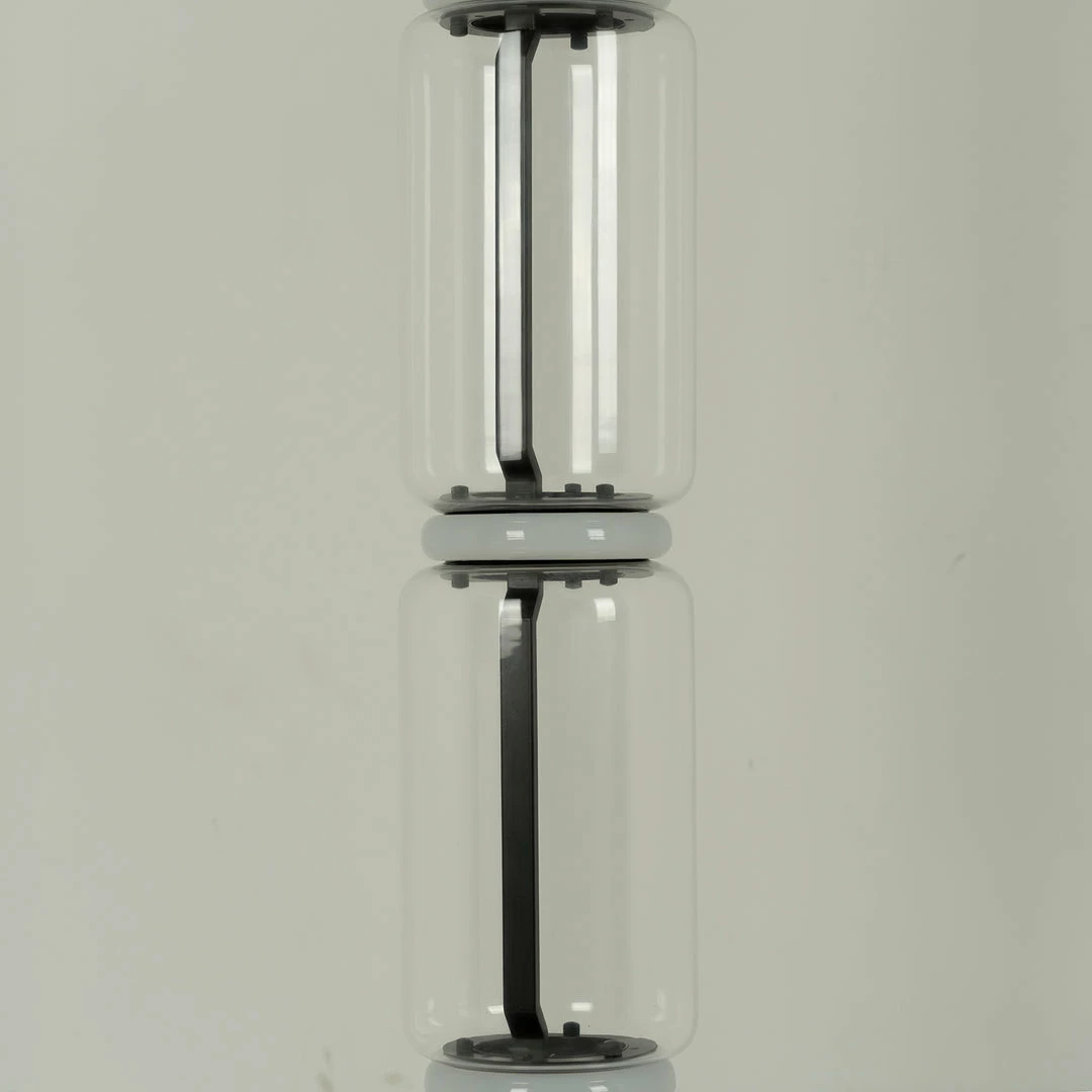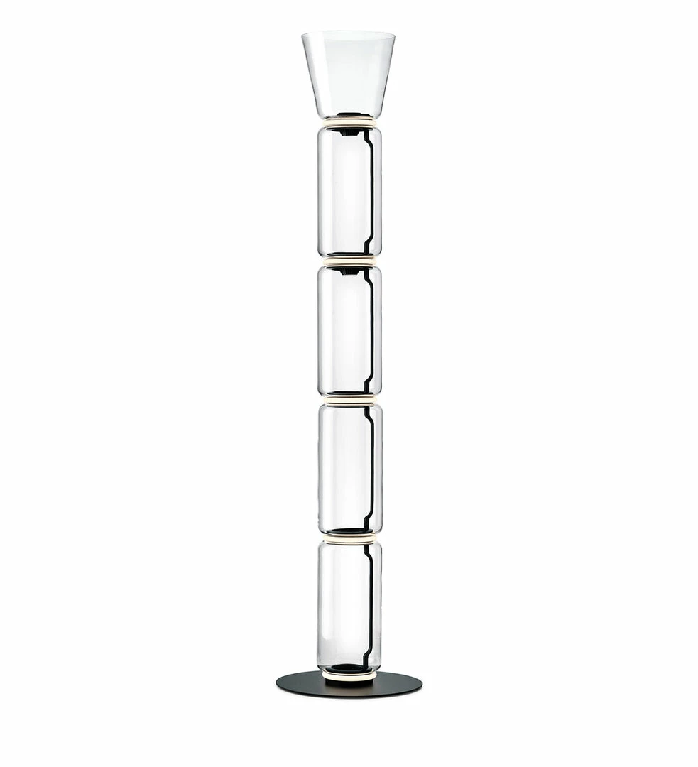 The brainchild of master designer Konstantin Grcic, Noctambule futuristic lighting system that blends innovation, efficiency, and aesthetics. Its transparent hand-blown glass cylinder is surrounded by discrete LED technology on top and at the bottom, thus making the foundation of the lamp stylish and stunning. The user can attach additional components to the fixture in order to experiment with different styles of lighting. This helps create columns of light at varying heights that light up at the intersecting points between each module or unit.