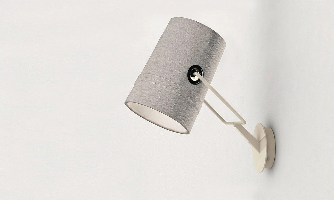 The Fork lampshade is inspired by casual fashion, by campsite tents, and by an informal, playful and dynamic lifestyle. The stitching on the fabric has been created like that on jeans and the rings are not merely decorative, but respond to practical needs with simplicity and immediacy.