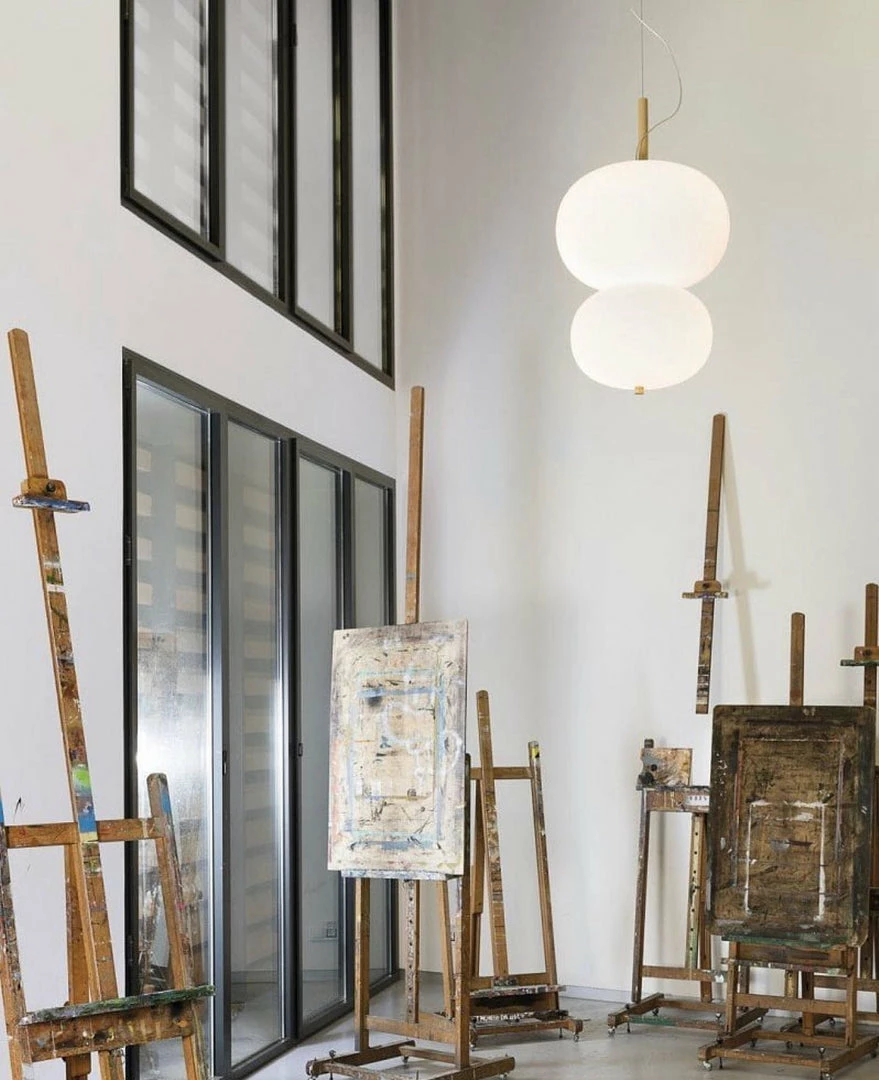 Ilargi lamp takes shape in a subtle and minimalist piece where a wooden wand sits between traditionally hand-blown glass spheres.Its warm, timeless design provides soft, pleasant light that adapts to professional and domestic settings, creating comfortable, natural spaces.