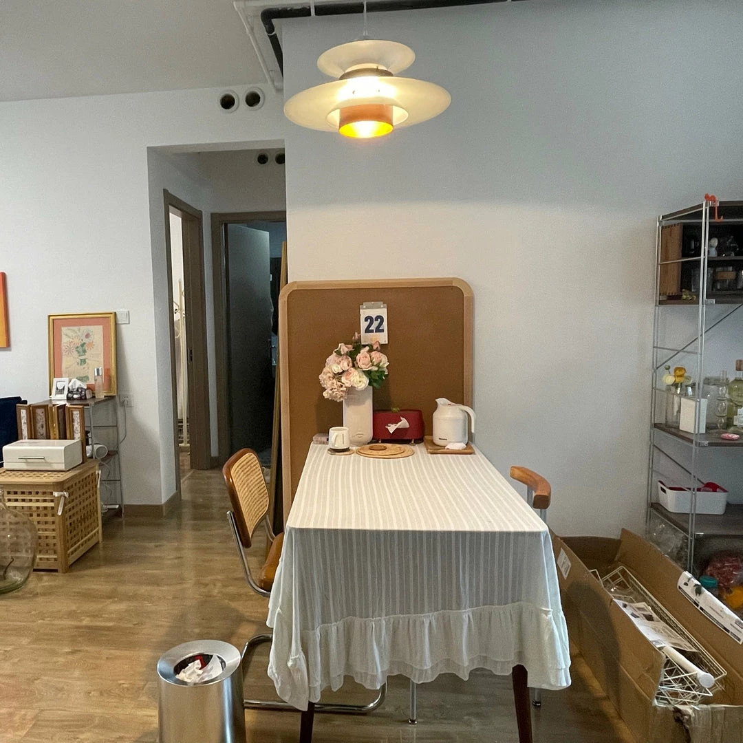 The design of four shades is characterized by a unique light that quietly spreads through the gap while covering the light source.The calm atmosphere with a Scandinavian taste gently shines not only in the dining room but also in the bedroom and children’s room.