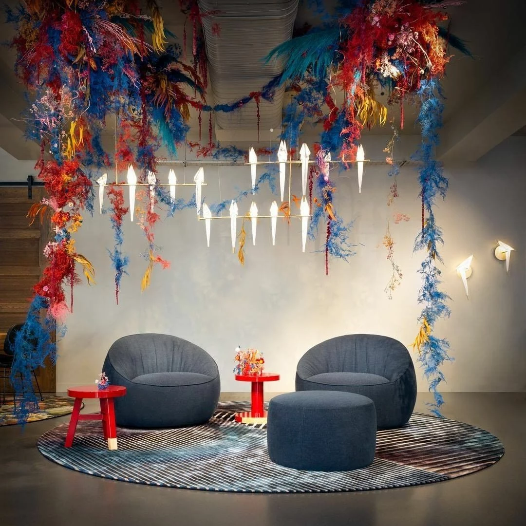 Perch Light is a collection of suspension, table, wall and floor lamps; with an original design reminiscent of birds, of diverse size, placed on a branch; a figure that expresses serenity and tranquility. The light emitted by Perch Light is warm and welcoming; perfect to create a relaxing atmosphere. Birds in perfect balance may swing when touched. Perch Light is available with small birds.