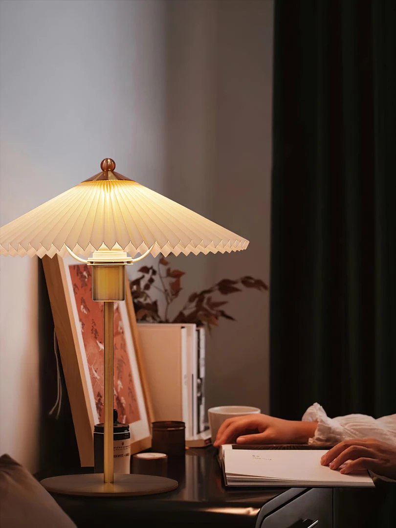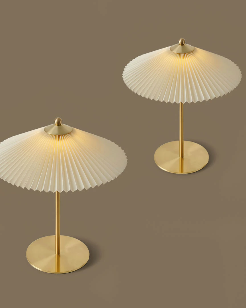 Beautiful Pleated lamp in brushed gold finish with beige pleated shade