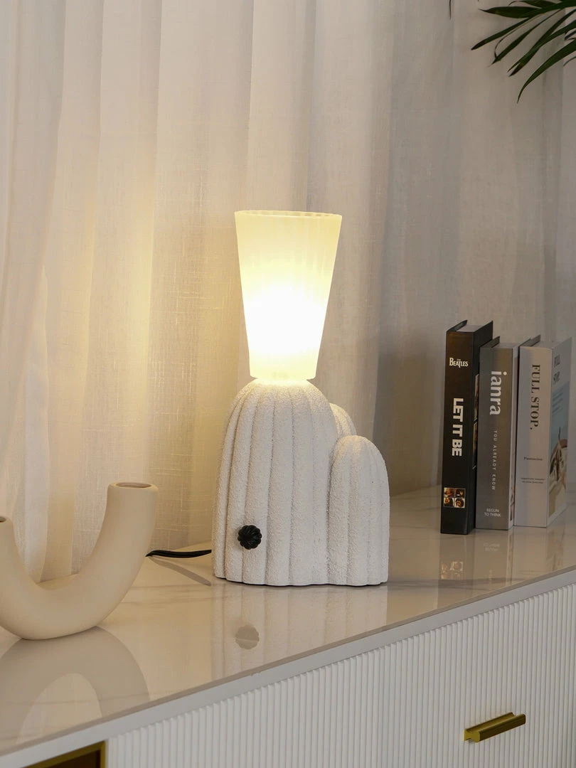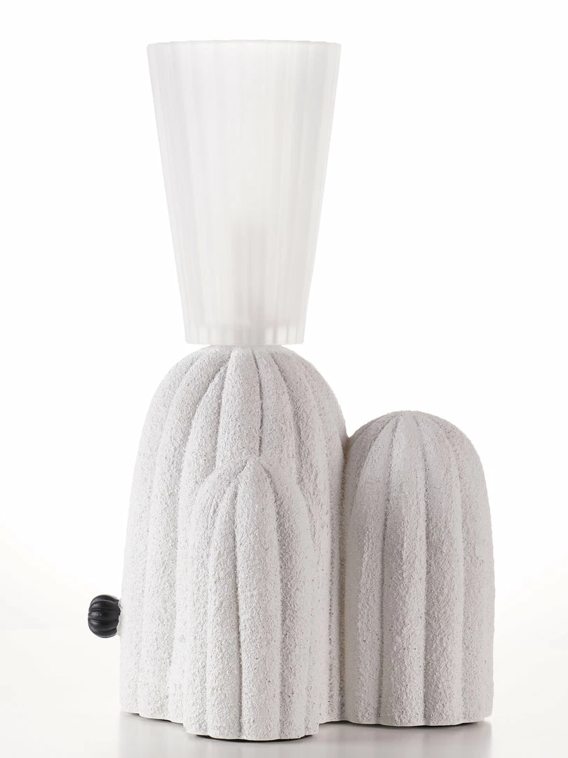 And no dessert is complete without a Cactus. I created the RBS Cactus Lamps in a similar way as the furniture: by carving a solid block of sand and setting it permanently in place with resin. This piece includes a glass element that was mouth blown into a hand-carved sand blow-mold.