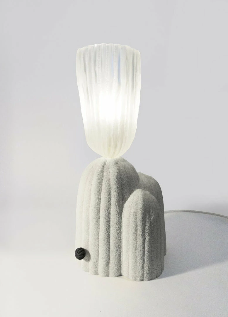 “RBS Cactus Lamp” by Steven Haulenbeek. Sand Cast & Resin, 2019. On display at The Golden Triangle for our 30th Anniversary Celebration + Global Best. Steven Haulenbeek is an artist and designer from Chicago. His work runs the gamut in scale, material, and process. All exhibit a refined understanding of materials and aesthetic simplicity. Recently, Steven has received global recognition for his ice cast vessels and his sand cast resin furniture. “After getting deep into the process of creating sand furniture, my studio began to look like a desert with several inches of sand on the floor.ย