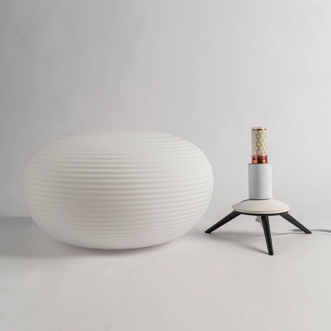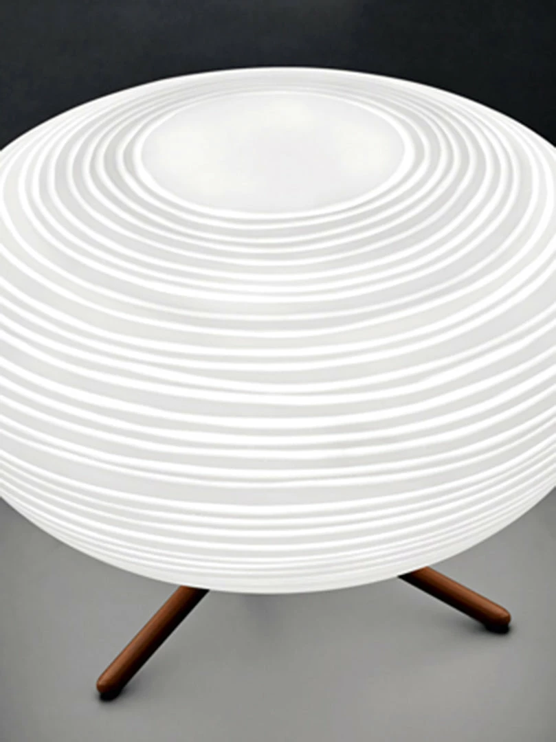 The Rituals lamps speak the language of beauty and poetry. They are made with hand-blown glass marked by thin engravings which recall the art of grinding resulting from skilled craft-based workmanship. Rituals Table lamp series creates intimate light, softened by the creased surface.