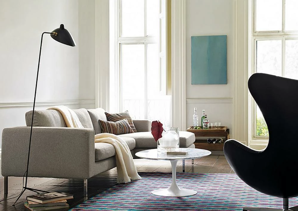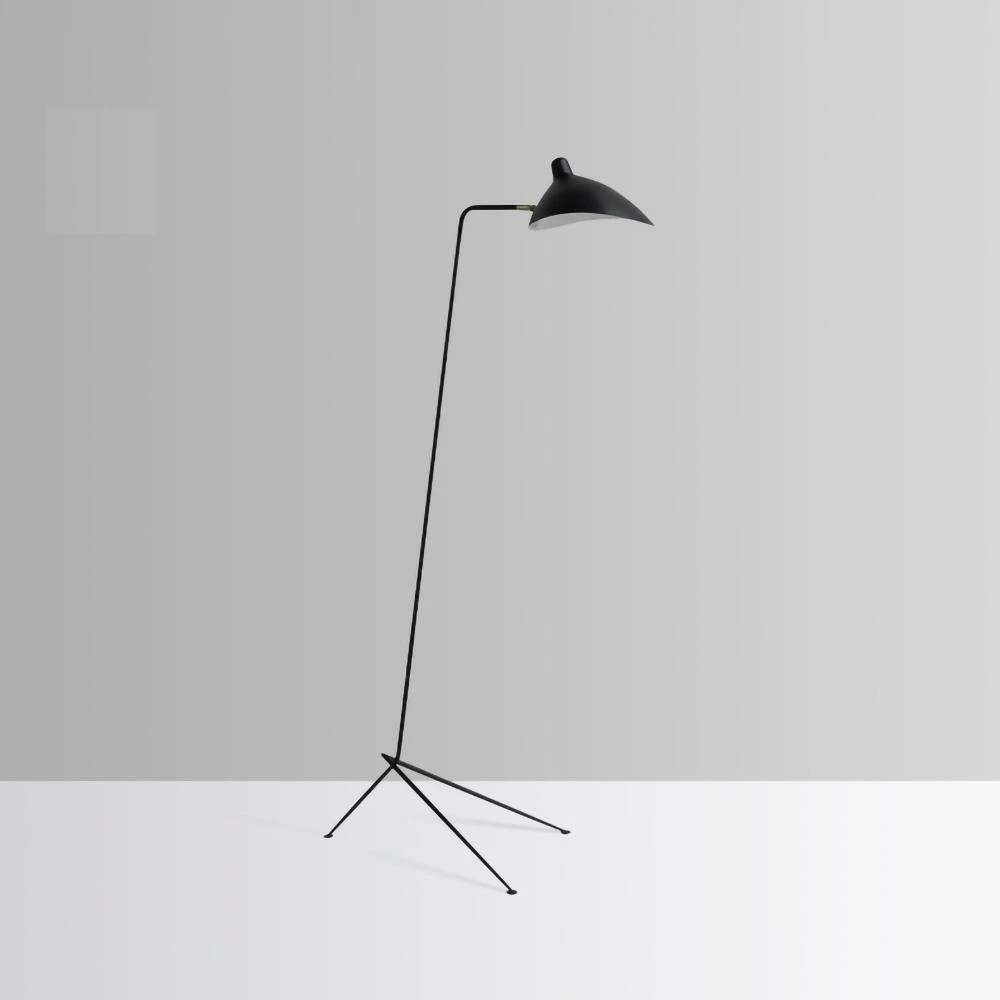 Mouille designed his angular, insect-like lights as “a reaction to the Italian models that were beginning to invade the market in 1950,” which he criticized for being “too complicated.” His large-scale Three-Arm Floor Lamp (1952) has a kinetic, sculptural aesthetic that evokes a sense of movement in space. All of the arms can be rotated in various directions, allowing for ample, well-directed lighting for any task.