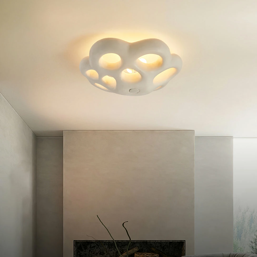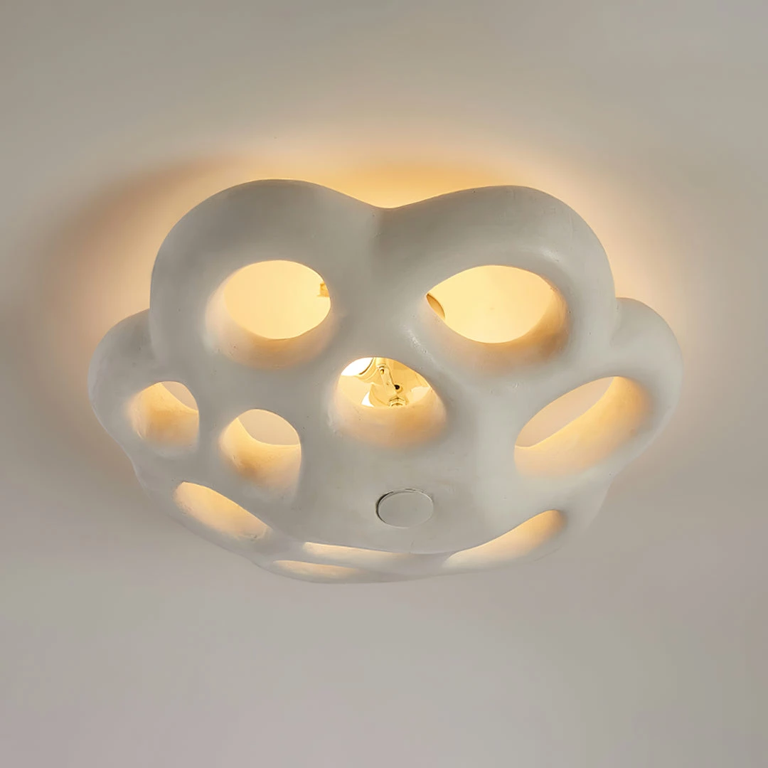 The Soka Ceiling Light features a minimal design that showcases a flower shape. This retro ceiling light casts diffused, ambient lighting perfect for use in hallways, bedrooms, dining rooms, and living room spaces.