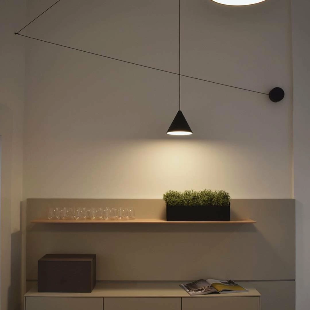 The String Light presents itself as a modern lighting solution with a fascinating design concept that allows for many installation options. The most striking feature is that while many other light fixtures try to hide their cable connections as good as possible, the String Light purposefully uses the cables as a design element. By means of hooks and eyes, the pendant lamp can be arranged within the room in various ways – patterns, graticules or complex geometrical forms – no limits are set to your imagination when arranging these lights.